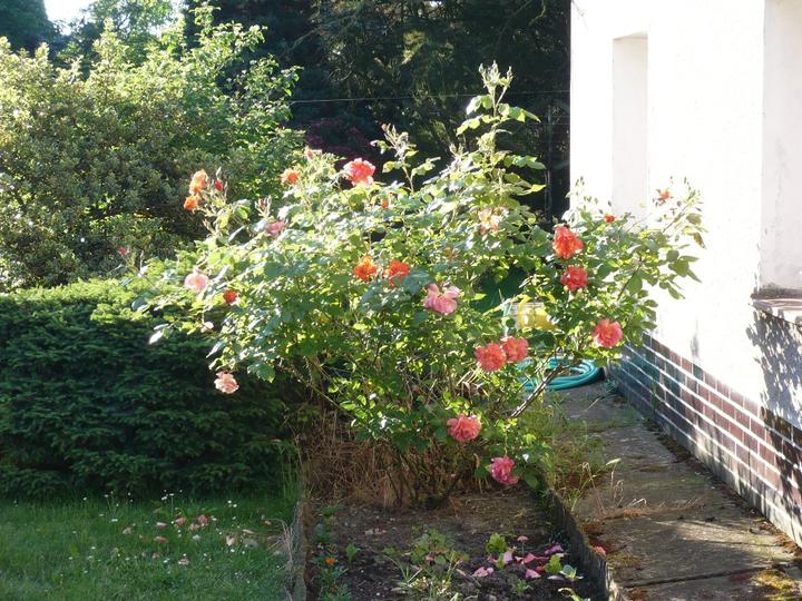 dům, zahrada, fíky, růže