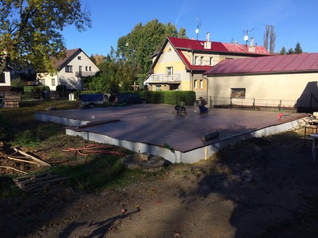říjen 2017 - izolace desky, začíná se zdít