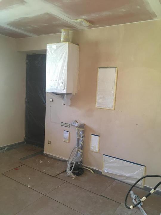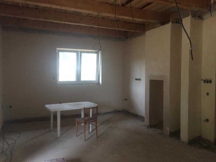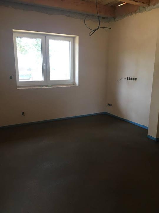 říjen 2018 - bílení, zateplení stropu, malování dětského pokoje, betonová stěrka za TV a v ložnici, topíme!