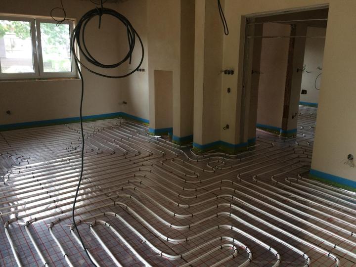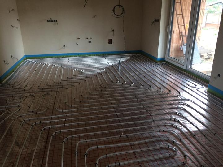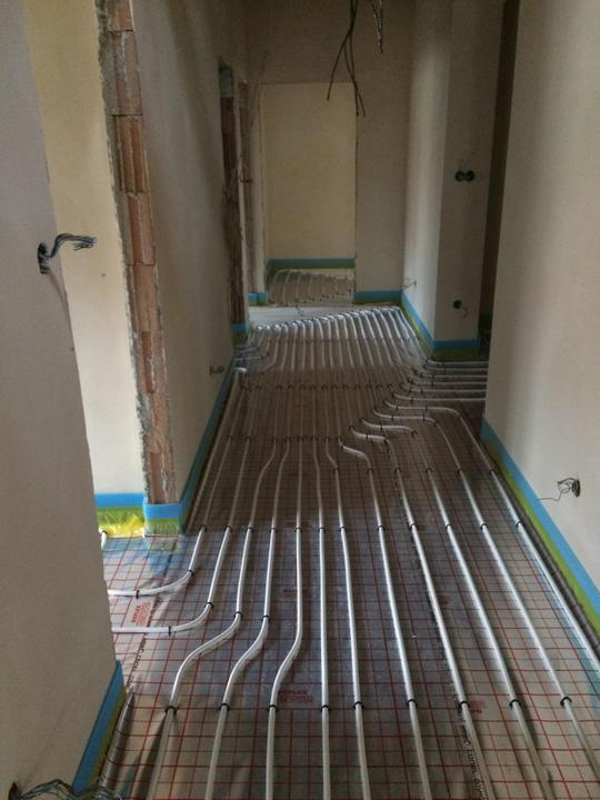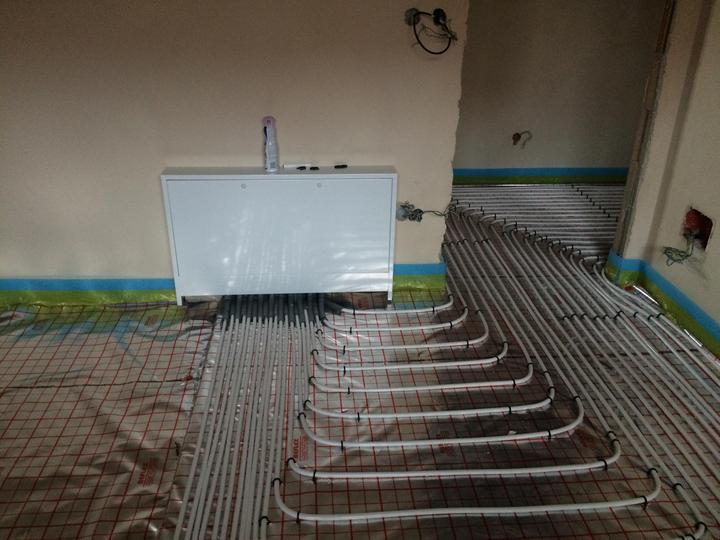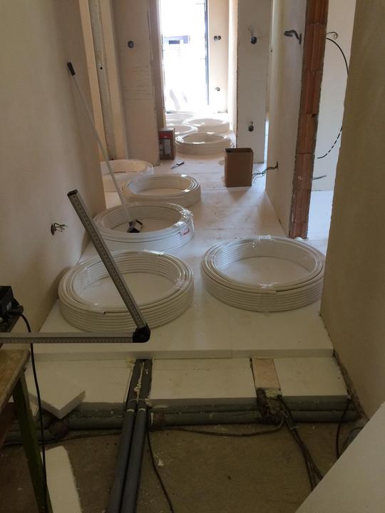 červenec 2018 - podlahové topení, zalití podlah, položení dlažby v technických místnostech