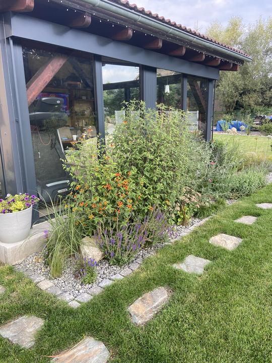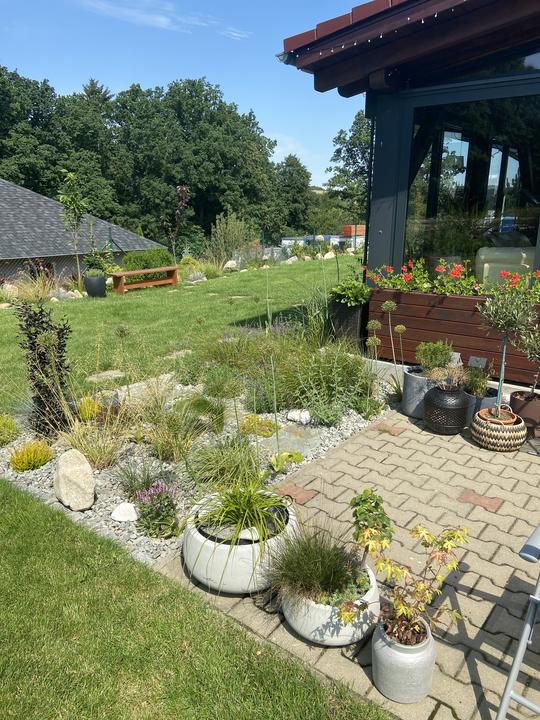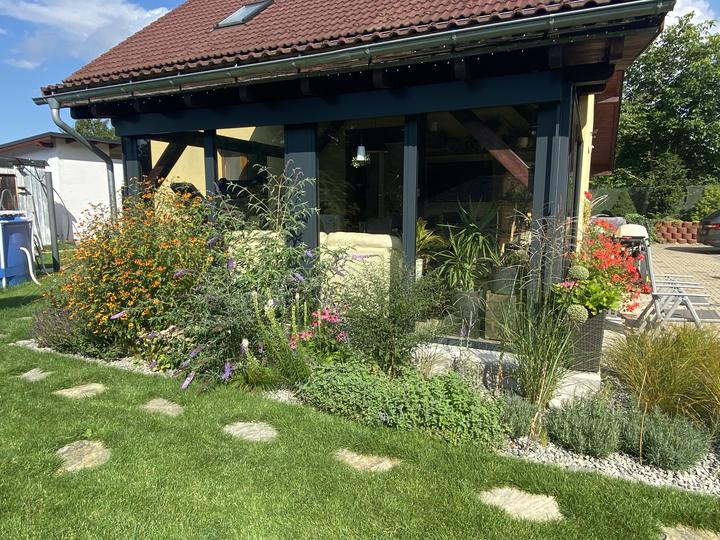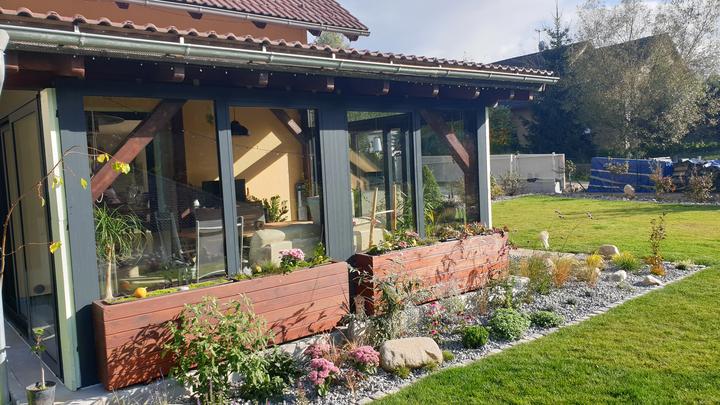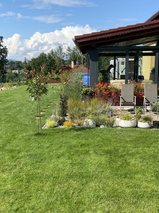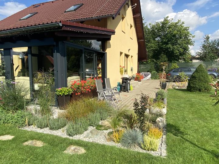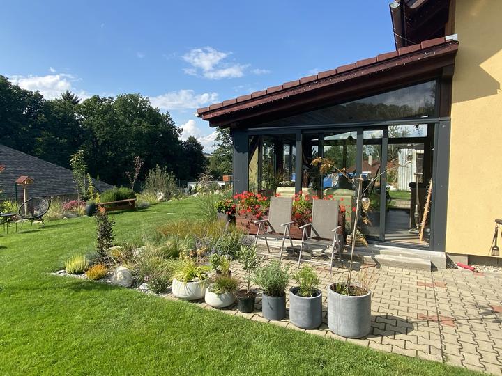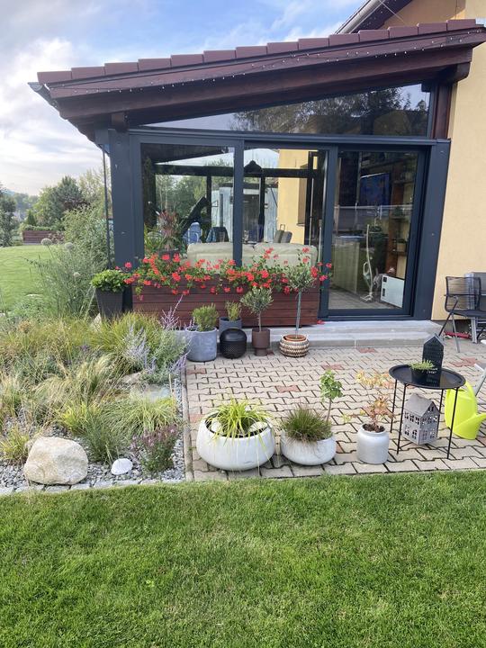 Pergola + zimní zahrada + zahrada