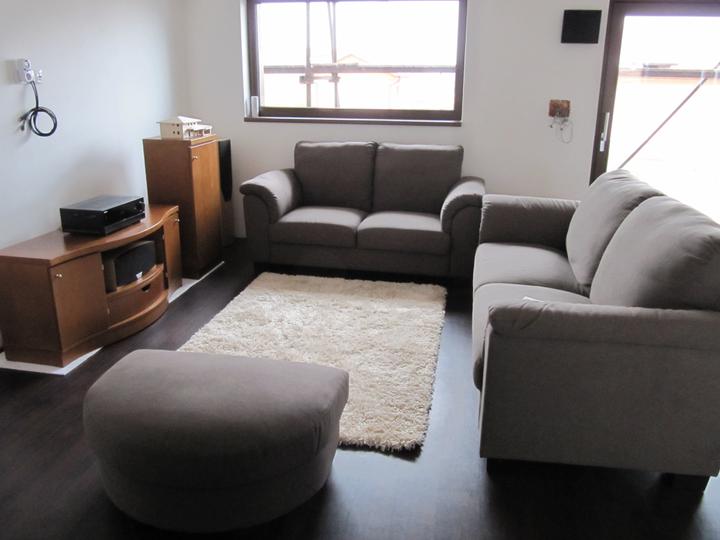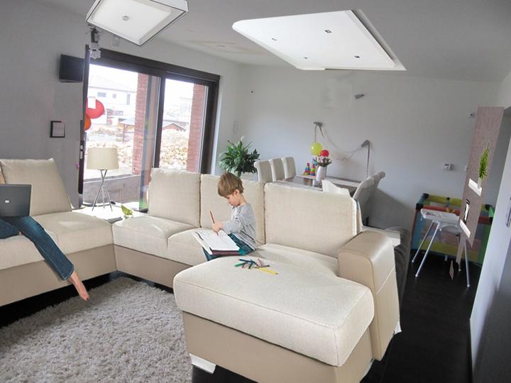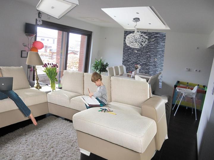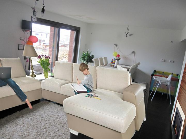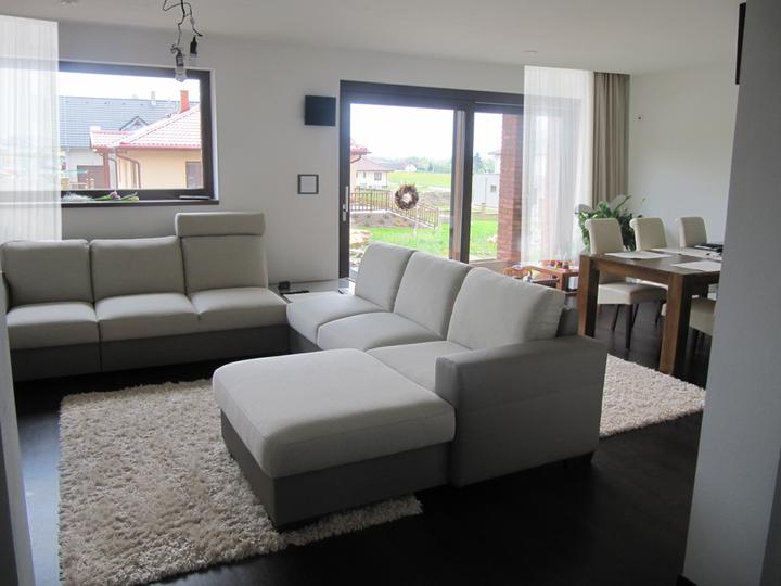 Obývací pokoj, jídelna a kuchyň realita