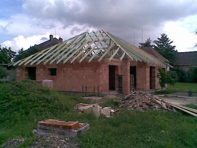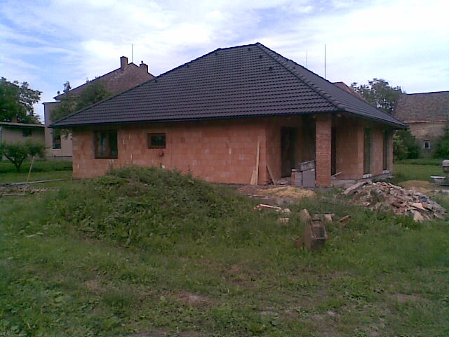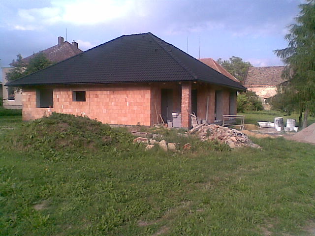 Leden 2010 veškéré převody vyřízené, nyní nás již čeká získat stavební povolení, které má na starosti náš pan projektant. Doladěny nějaké upravy na plánku. Domek bude rozšířený než je původní plánek, takže zastavěná plocha bude činit 186 m2, kuchyn s obývákem a tři pokoje. Ve štítu vznikne malá půdička se střěšním oknem.
