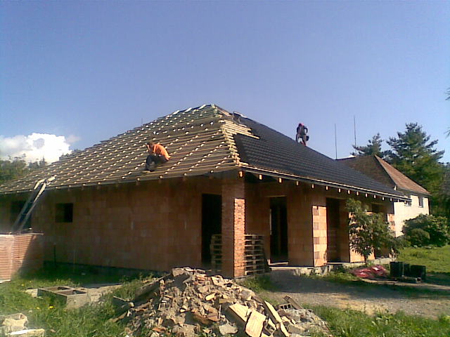 Latování a pokládka tašek probíhá své pomoci pod dohledem odborníka. Vše se dělá po odpolednech a víkendech.