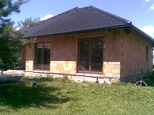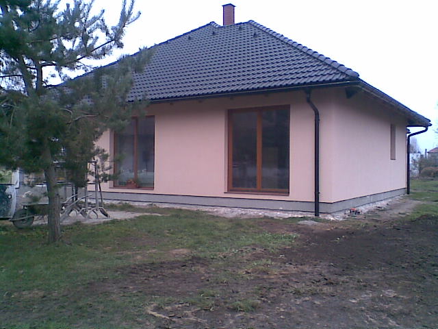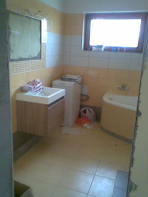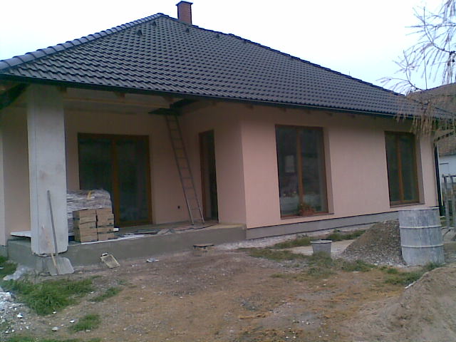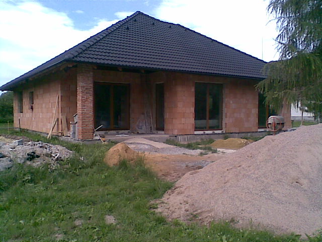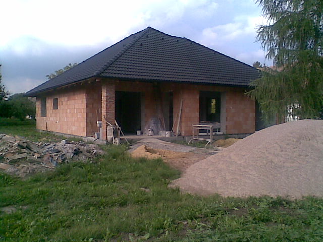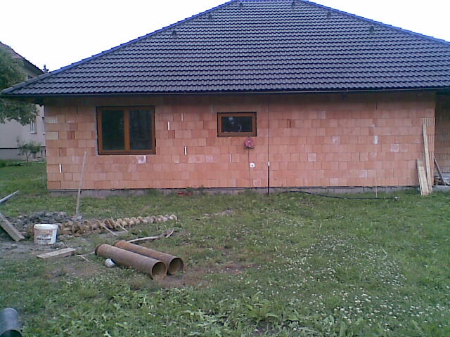 7.10.2011 Máme hotový komín a naštukovanou fasádu, barevná fasáda připravená. Venkovní parapety hotové. Komín kouká :-) Chybí doštukovat troje dveře-otvory a záchod. O víkendu namaluji stropy konečnou bílou barvou a vybílim dva dětské pokoje. Vana posazená, zbává obložit.Zbývá dovybrat barvy do ostatních pokojů a chodby a bude se pokládat podlaha :-))) UŽ SE NÁM TO BLÍŽÍ :-)