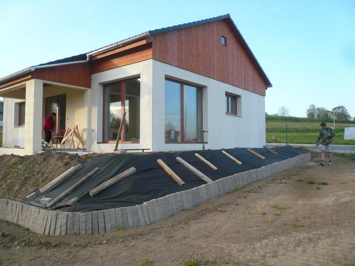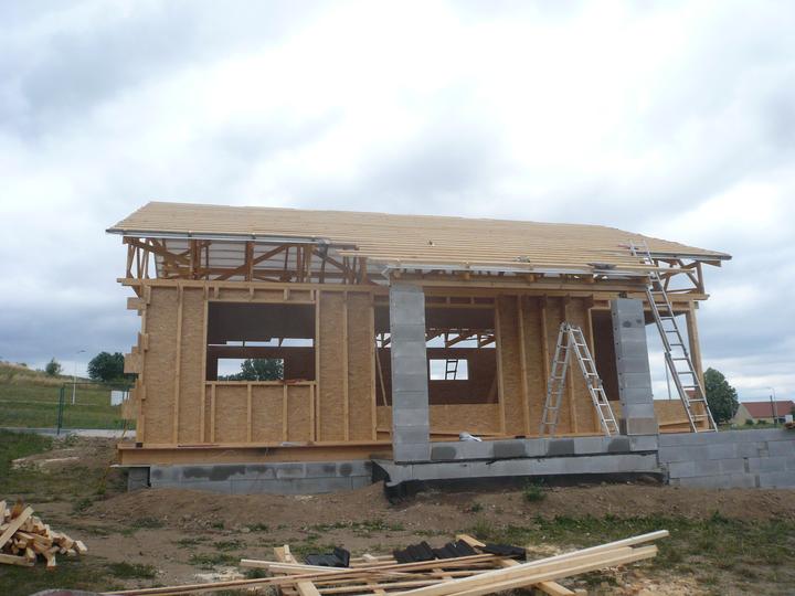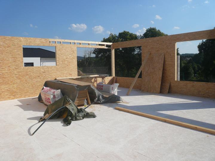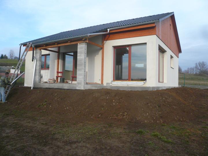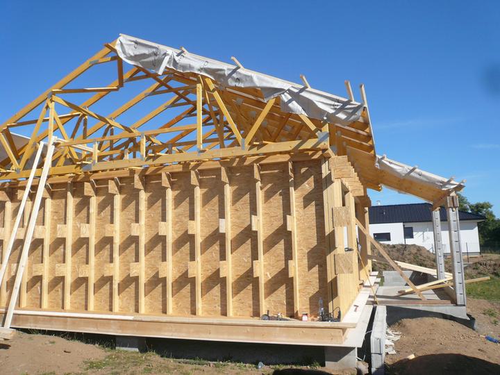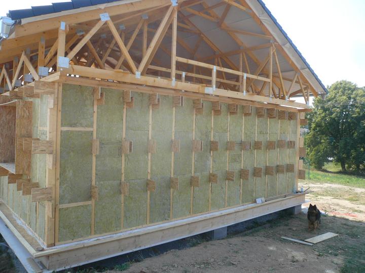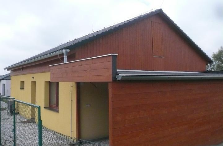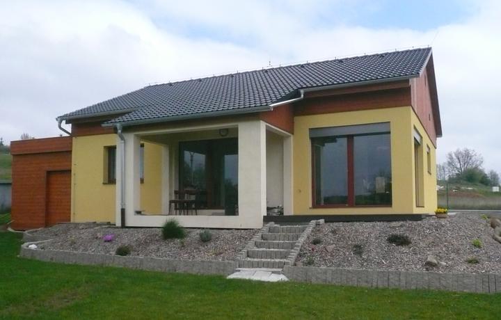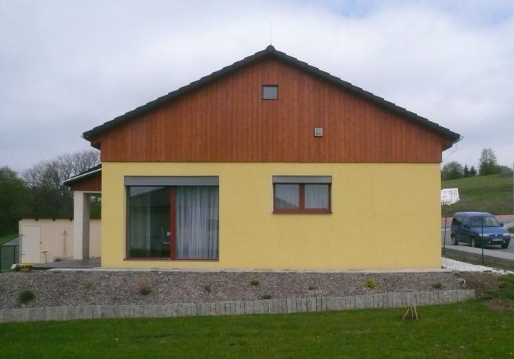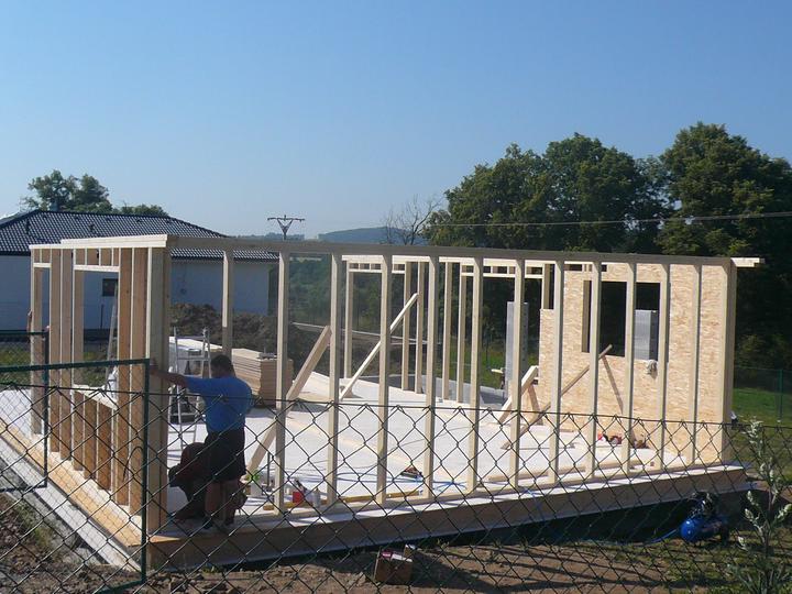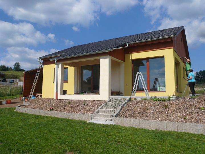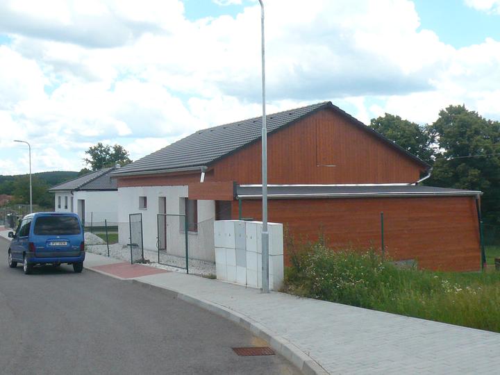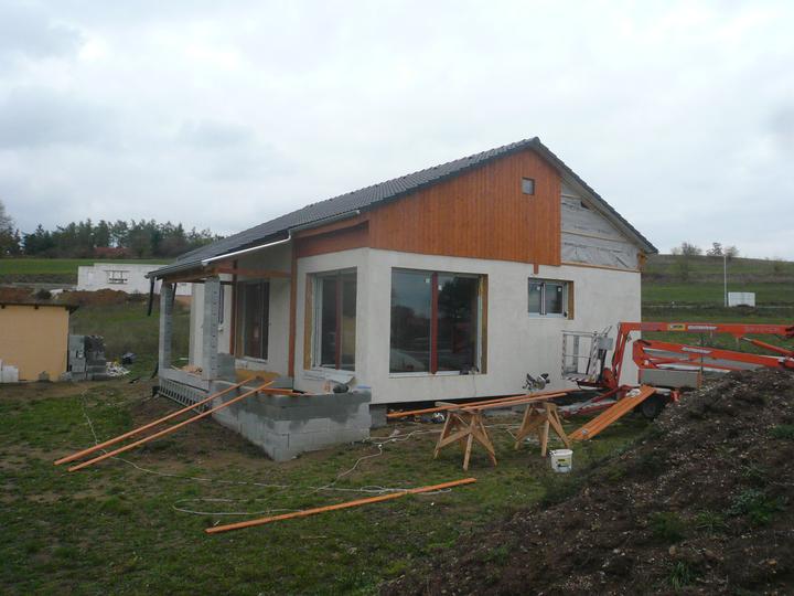 Pasivní dřevostavba na betonových patkách S. Hoštice, stavěno převážně svépomocí 2015-2016. Tep. ztráta 2,2kW, vytápění a ohřev TUV tep. čerpadlem vzduch - voda 3kW, podlahové topení, rekuperace Domeo 210 s rozvodem Spiro 125mm