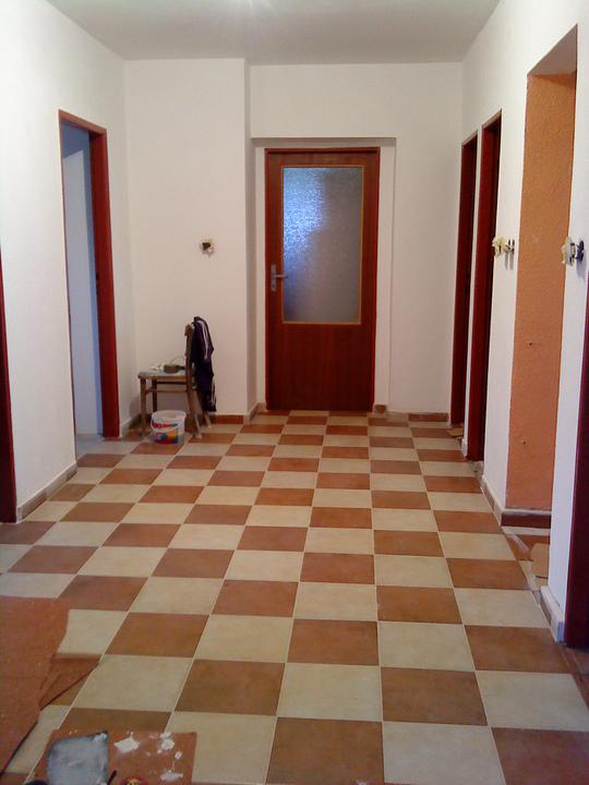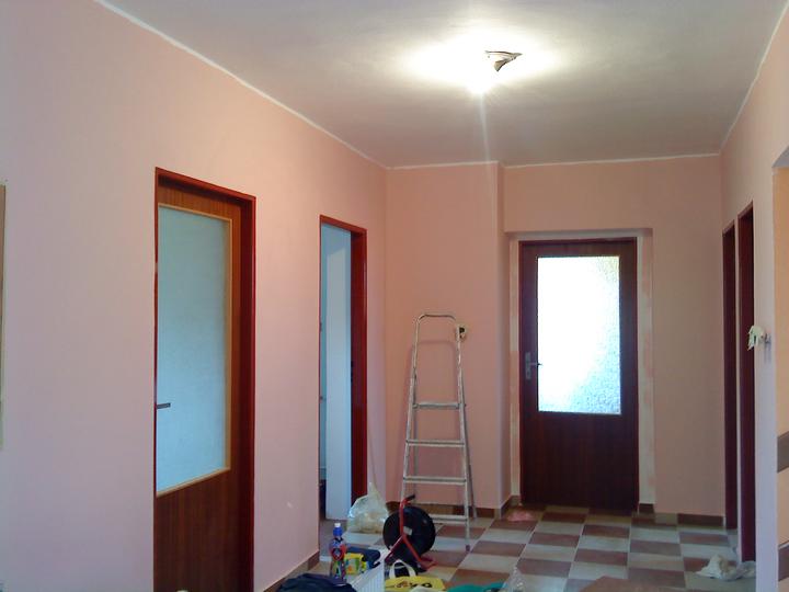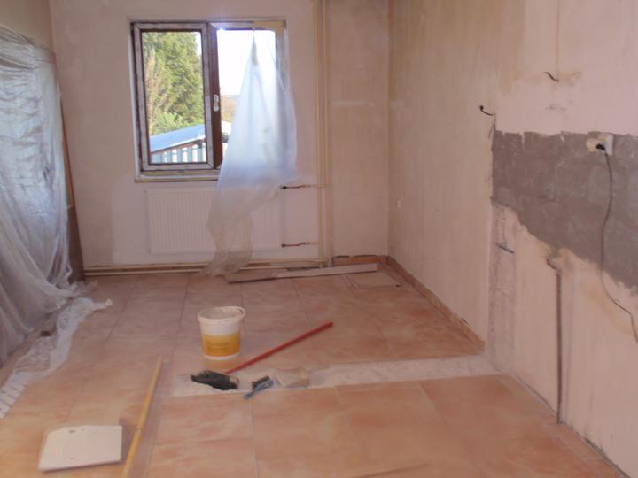 Nakonec jsme se pustli do více věcí než jme mysleli, máme hotové sádrokartonové stropy a šikminy v pokojích v patře (místo palubek), hotovou dlažbu v obyváku, jídelně a kuchyni a také na chodbě v patře. Vybourali jsme koupelnu a budeme dělat novou, již máme vodu v koupelně i v kuchyni v plastu. Dnes jsme se rozhodli, že dáme i novou dlažbu na schody a do dolní chodby. Čekáme na kuchyň (chystáme elektriku, vodu, plyn)...