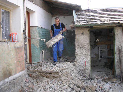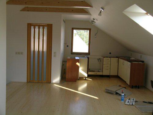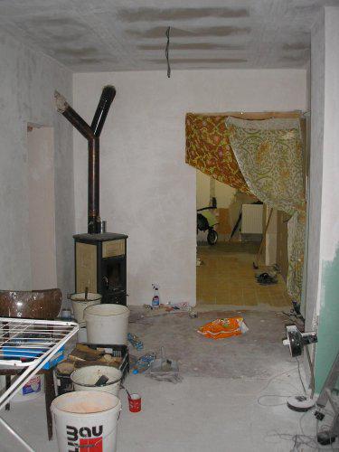 Náš domeček je postavený někdy kolem r.1950, patřil manželovu dědovi.Ještě, než jsme se s manželem poznali, rozhodl se, že začne dům předělávat a to sám..děda ještě žil a tak začal s přestavbou od shora, bylo to asi v r.2004, předělal střechu a pak začal předělávat podkroví, které sloužilo jako ve většině domů, na krámy, nepotřebné věci, prostě klasická půda.Mezitím dědeček zemřel a s manželem jsem se seznámila já:-)) Tím, že byl manžel vytížený stavbou, začali jsme spolu celkem rychle bydlet a občas jsem mu pomáhala.Trvalo to celkem dlouho, nastěhovali jsme se nahoru přesně v prosinci 2005, do té doby jsme žili dole, vše bylo po v původním stavu, takže žádný luxus....
