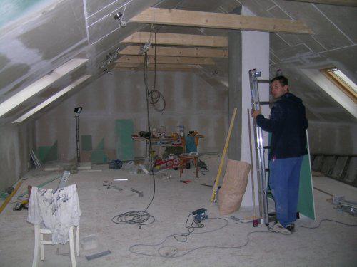 Tím, že si opravdu téměř vše(až na elektriku a dlažbu) dělá sám, trvá to opravdu dost dlouho a nemůžu se dočkat, až bude hotov i spodek a nebudeme se mačkat na podkroví, což je jedna, ač veliká, ale pořád jen jedna místnost..pak nás ještě čeká zateplení, fasáda a plot, ale to už bude opravdu poslední, co nás čeká..