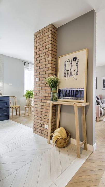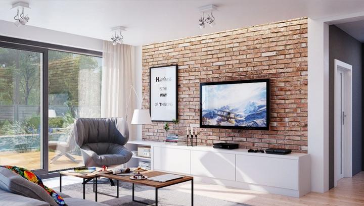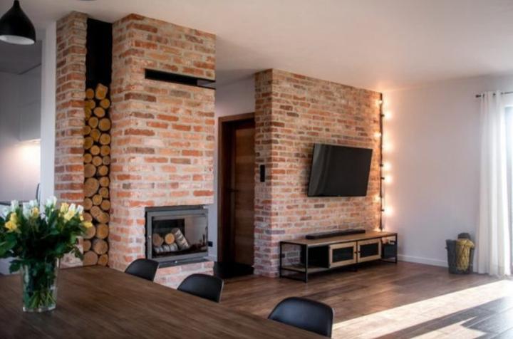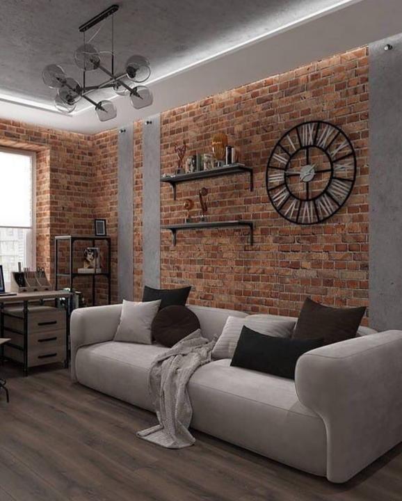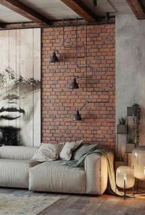 Vždy jsem chtěla cihlový obklad, do bytu se ho prosadit nepovedlo, snad to klapne do domečku. Kombinace s bílou, černou, šedou, béžovou a dřevem. Možná to ještě rozbijeme hořčicově žlutým ušákem ke krbu.
