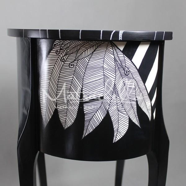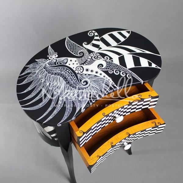 • Pracujeme především se starožitným nábytkem, kterému dáváme moderní design prostřednictvím důkladné renovace a následné černo-bílé nebo pestrobarevné kresby, geometrických vzorů, pop-artu či tatérskeho umění.