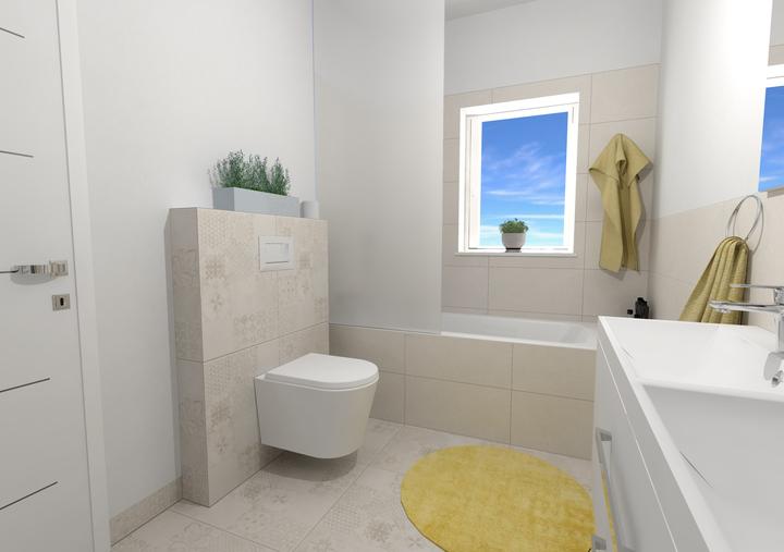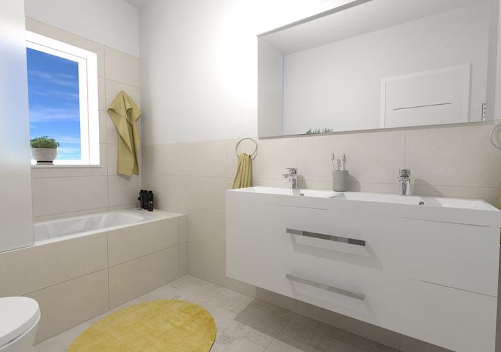 Dětská koupelna s vanou a dvojumyvadlem
