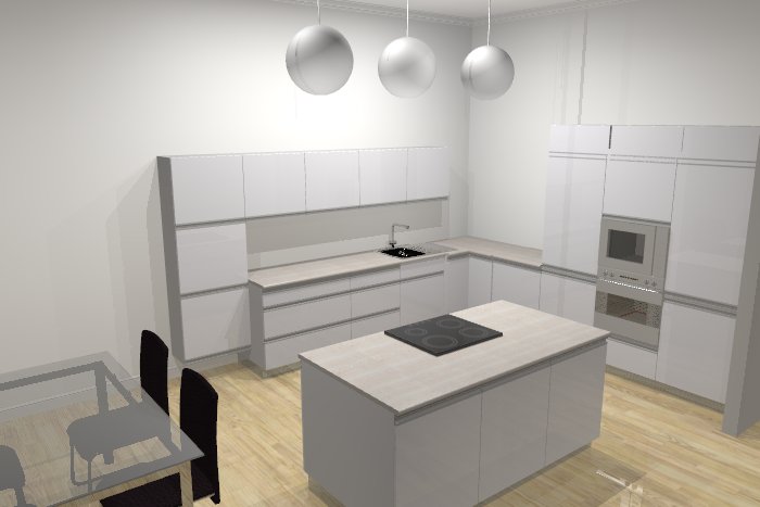 Předběžné návrhy kuchyně. Barvu zatím neřešíme, spíše dispozice.
