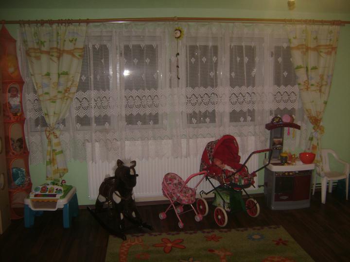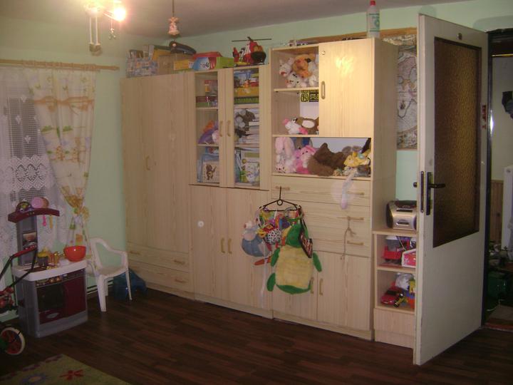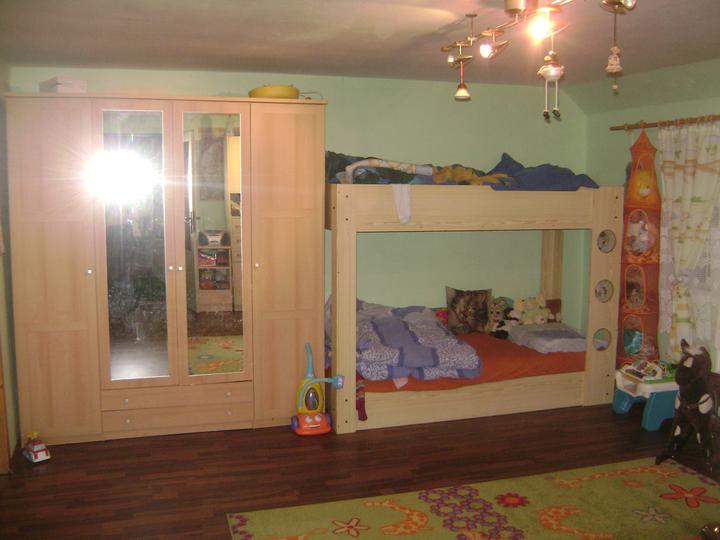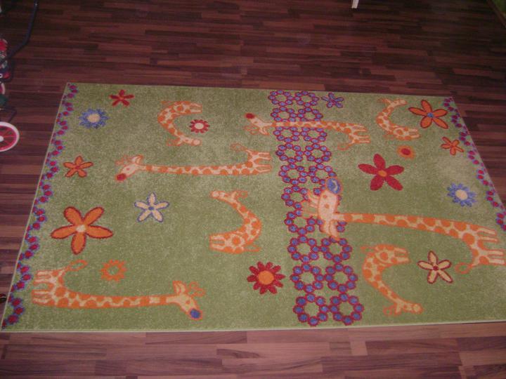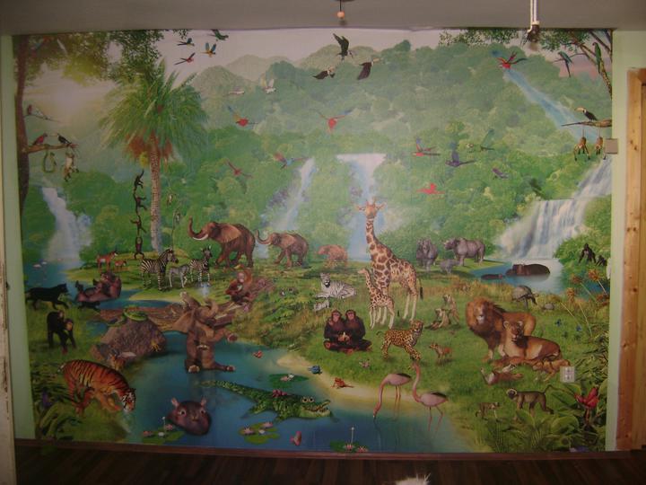 Ze starého dětského pokoje jsme rázem udělali nový jako SAFARI. Z původní broskvově oranžové jsme udělali hráškově zelenou. Modrý koberec, který byl už značně zničený jsme vyměnili za tmavě hnědou plovoucí podlahu.(jako že je to hliněná zem v prales…