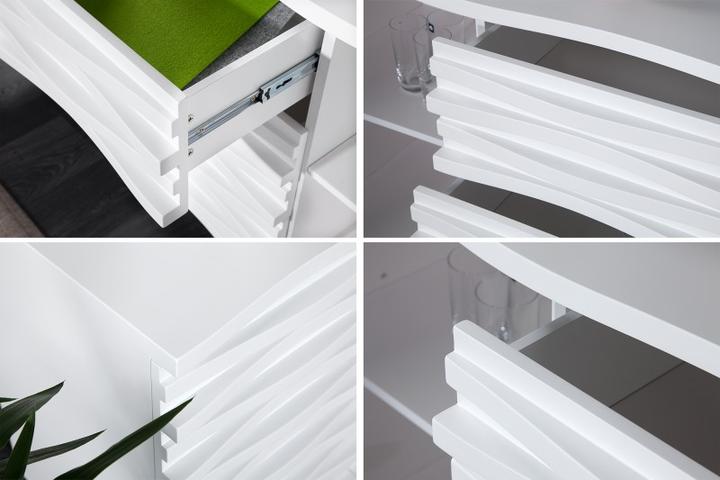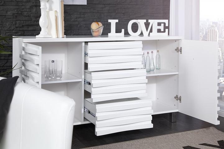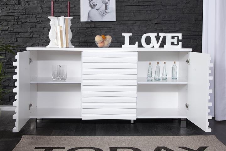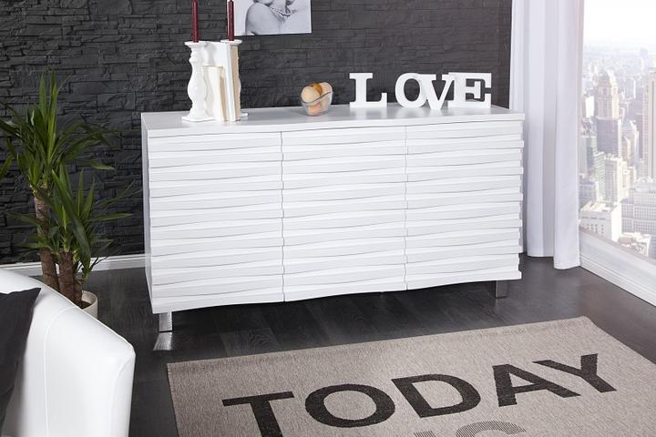 Krásná komoda Wave se dvěma dvířky a třemi zásuvkami poskytuje dostatek úložného prostoru. Zajímavý design dvířek je tvořen nerovnoměrně uspořádanými lištami. Tento design vás určitě upoutá. Komodu můžete využít i jako TV stolek. Hmotnost 80kg z kva…