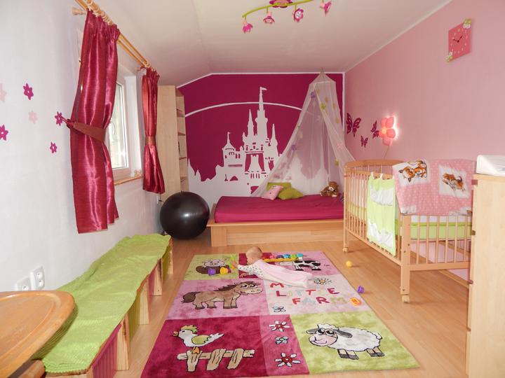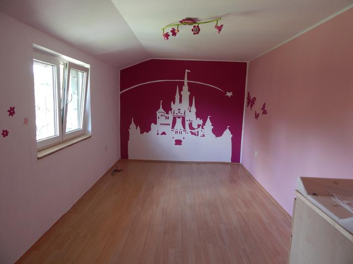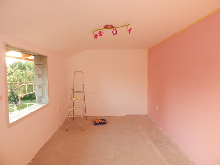 Barvičky stěn budou trochu méně růžové a světlejší :) .. a podlaha ještě není jistá, pořád se rozmýšlím mezi plovoucí podlahou a kobercem :/