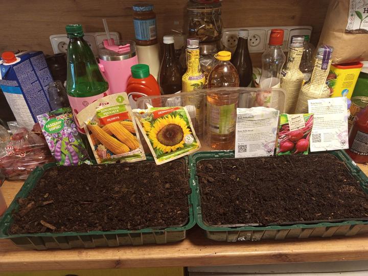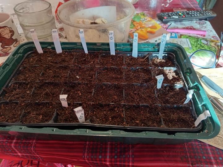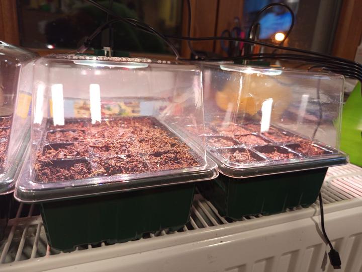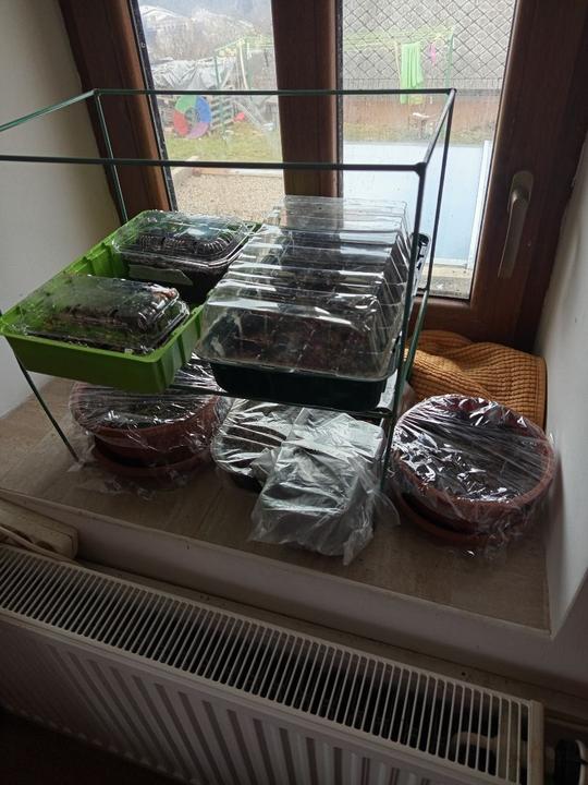 7.2.2025 dnes už jsou semínka všech paprik v substrátu ( a je jich fááák hodně- experiment-zkouším výsev po 1,2 i 3 semínkách, mám tam i vlastní semínka), vyseta i bazalka z Lidlu na papírových terčích.