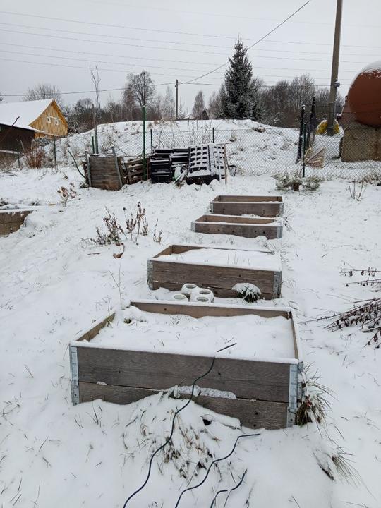 8.11.2025 povypusten bazén pod trysku, posekaná hlavní část zahrady, cíp až někdy strunovkou. Všechny kyblík z terasy a z pod garáže vysypány do záhonu. Jahodníky