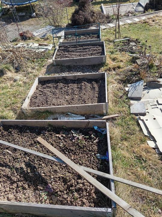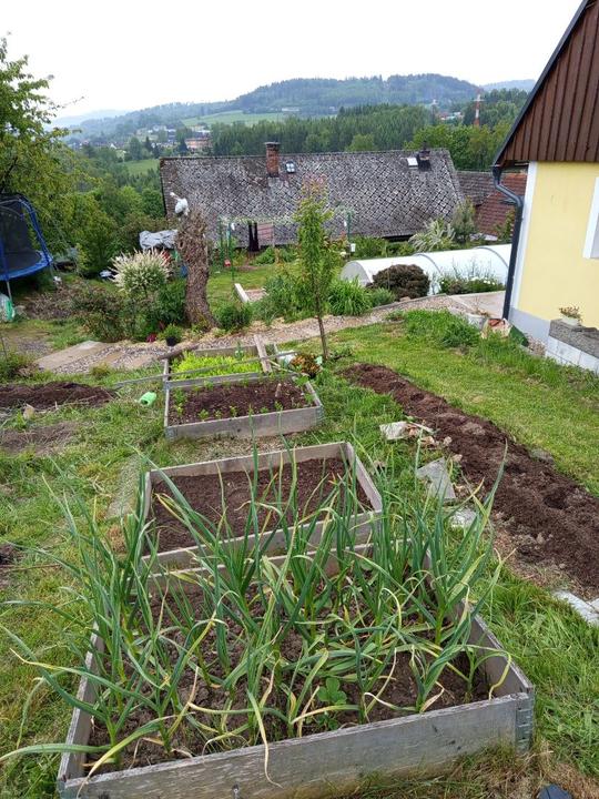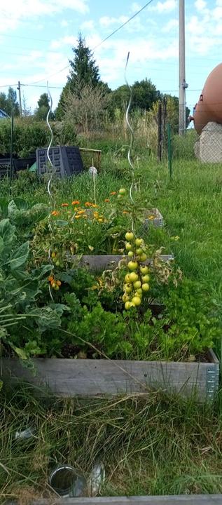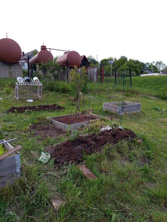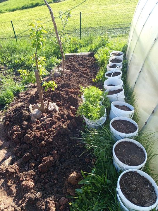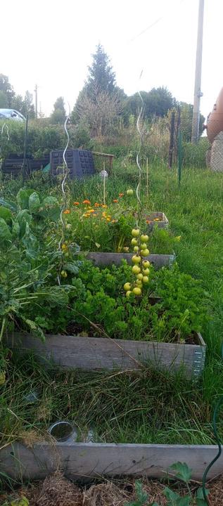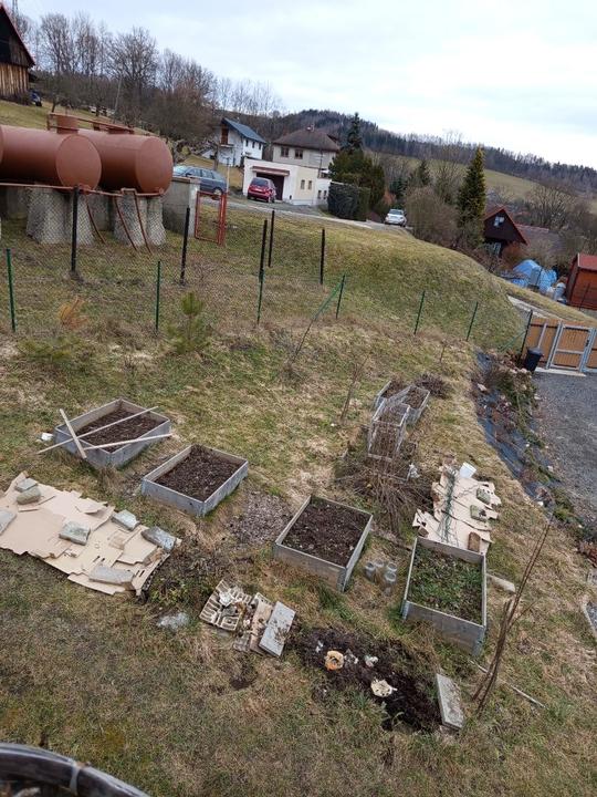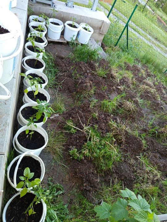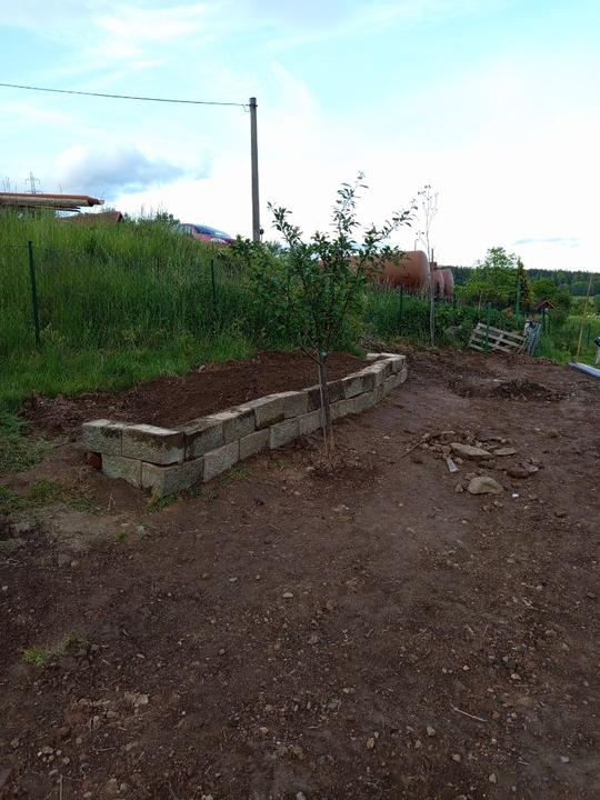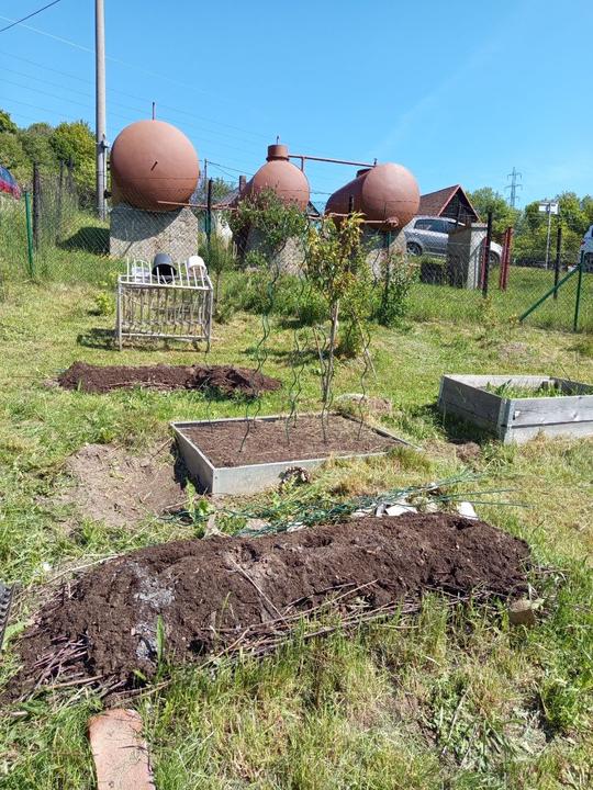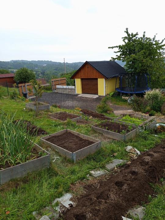 29.5.2025 zasazena okurka z trhu, nakoupeno na náměstí na trhu 4 ks rajčat Tornado, 4 ks rajčat Start a u bývalé zvl.školy koupený 2ks rajčat Sonet. Postaven vyvýšený záhon ze starých zkrytch bednění. Dosazena 2 rajčata vejce ptáka Ohniváka. Vysazeny cukety k cibuli.