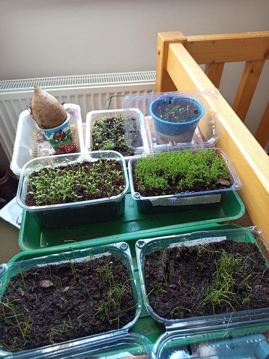 11.2.2025 vyhodnocena zkouška klíčivosti, z ní zaseta pažitka a lupina do kvetniku, t ks paprik od kolegyně Zuzany, 8ks špenatu Matador a 8ks červene řepy kulaté zaseto do sadbovače, mrkev ředkvičky, slunečnice a další ponechány k naklíčení na vatových tamponech. Další zkouška množení (klíčení batátů) v substrátu.