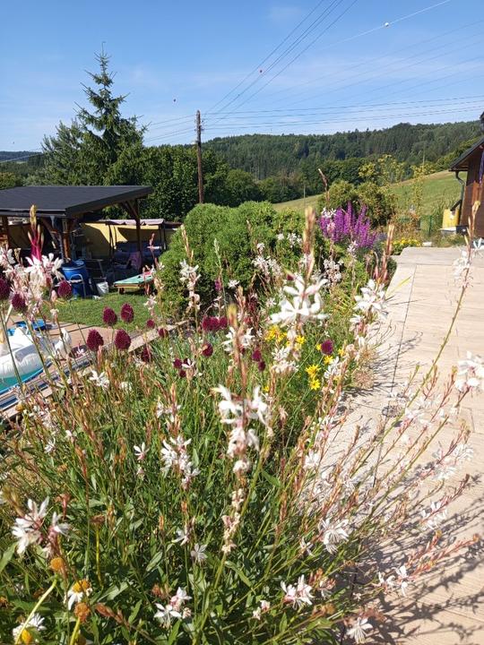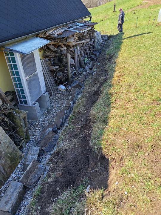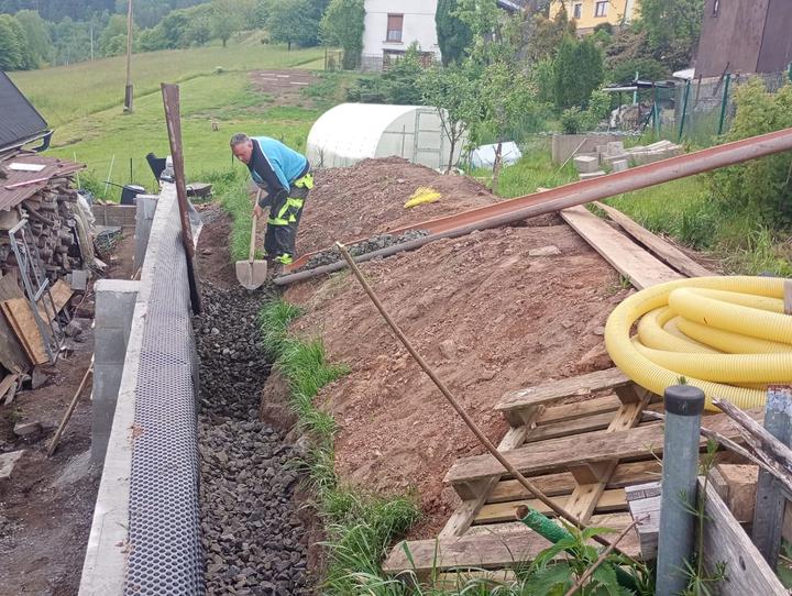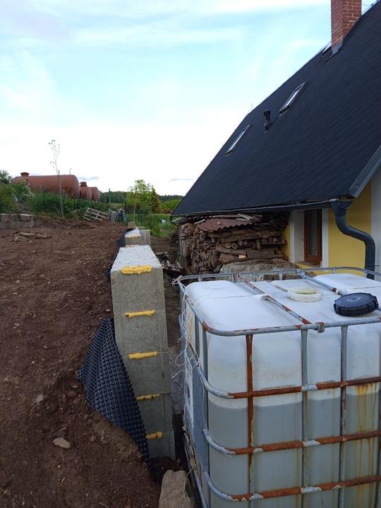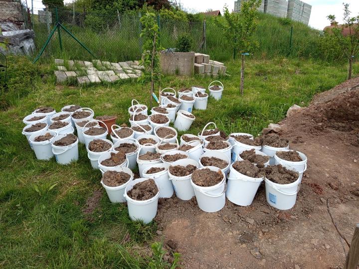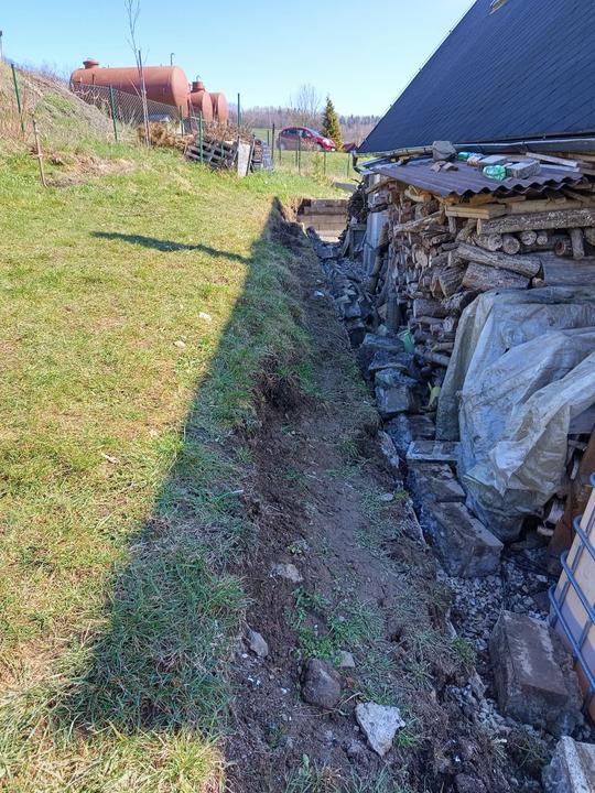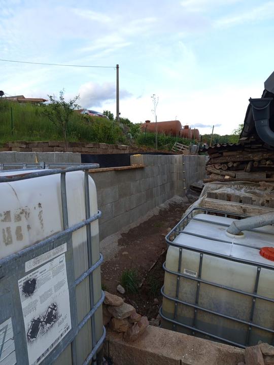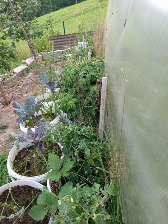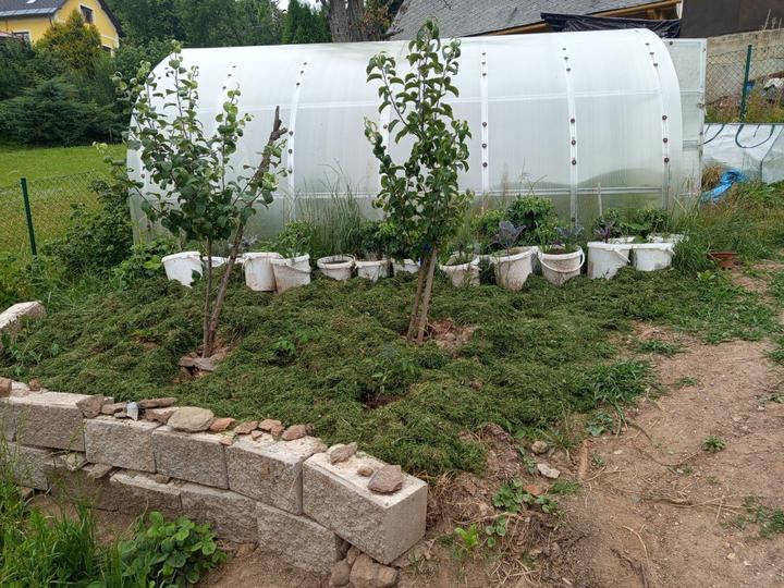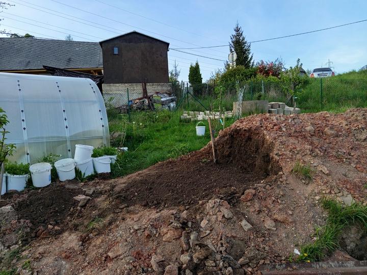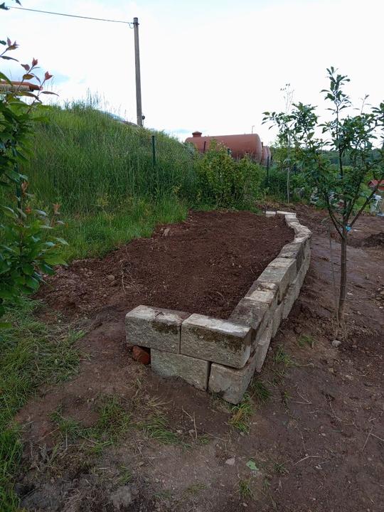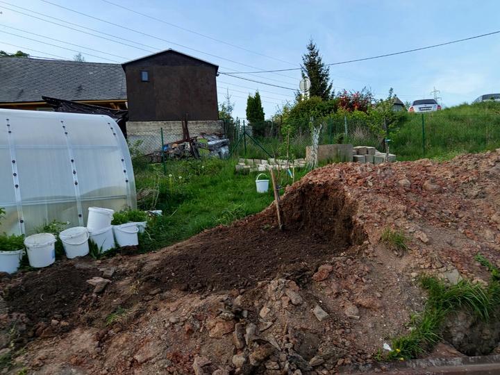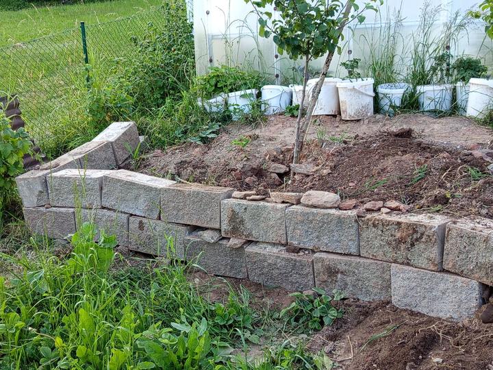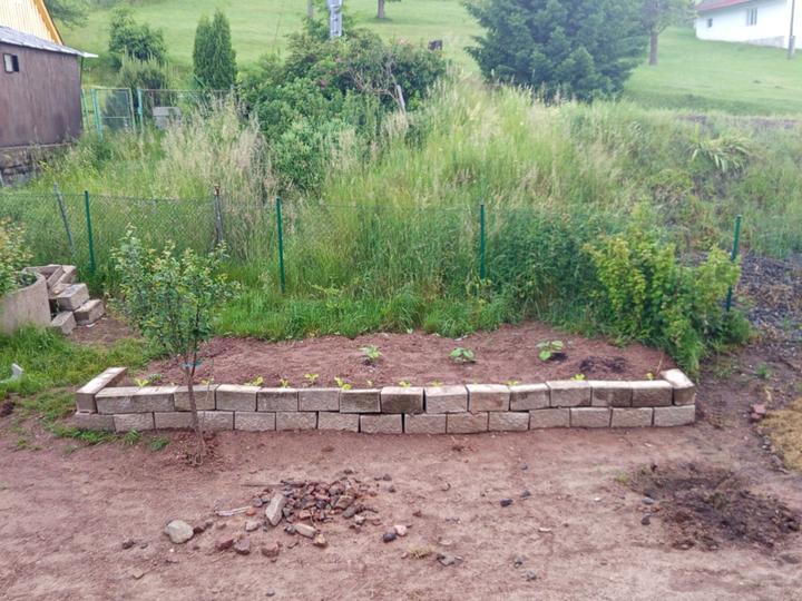 21.6.2025 skoro půl bazénu luxusní křišťál, ale než jsem vše stačila vysát, tak tam hupsly děti!😭já to snad nikdy nevycistin! Dnes manžel sekal bubnovkou, zase máme oraniště!😭potom začal upravovat prostor pod opěrnou zdi! Já vystupují rajčata, postavena další suchá zídka, tentokrát pod skleníkem. Chtěla jsem tam do budoucna pěstovat jahody, ale napadlo mne, že by tam byla pekna taková motýlí loučka nebo kvetoucí záhon (heřmánek, mák.......