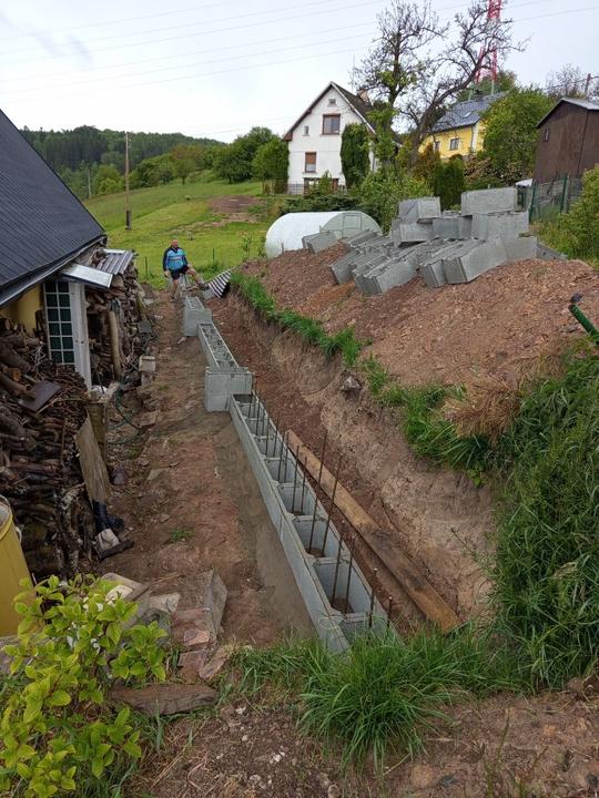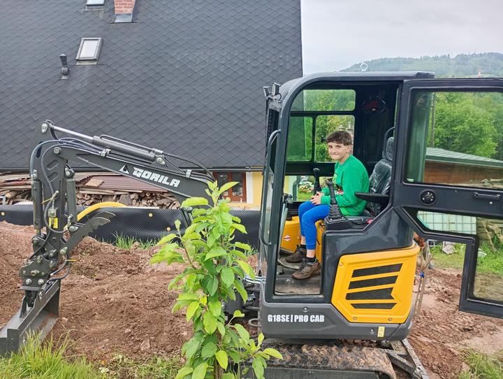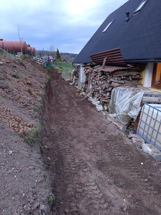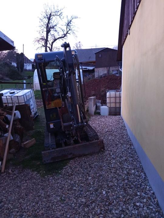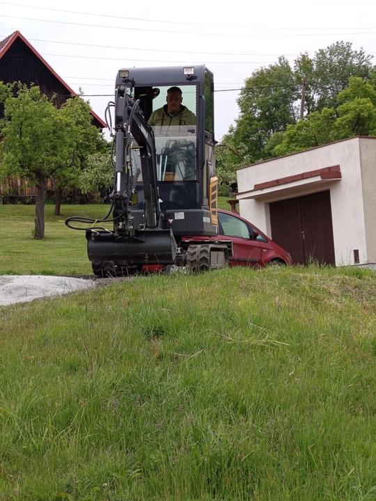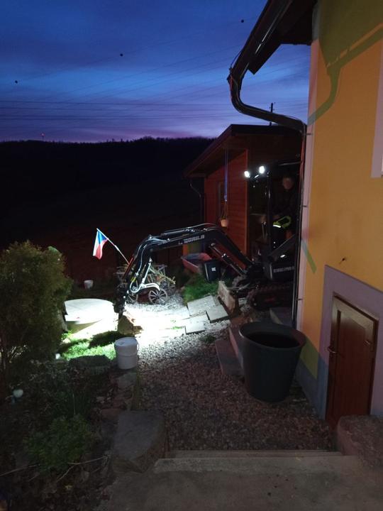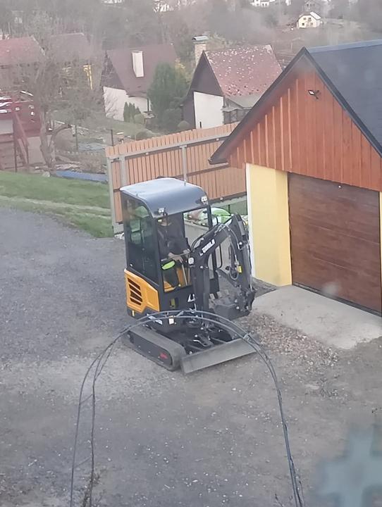 27.5.2025 dnes odjel bagr, horní zahrada téměř srovnána se zemí. Přivezena sklapecka štěrku a rozhozená na příjezd a před garaz