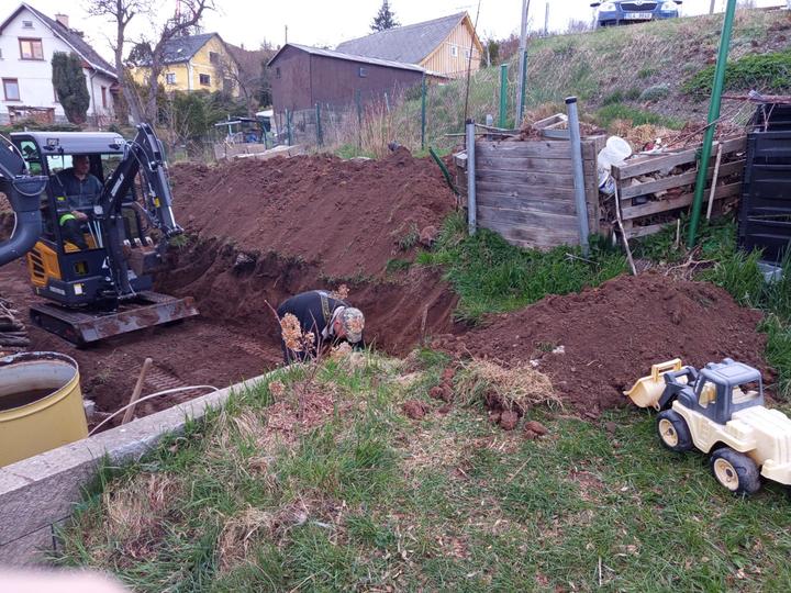 26.9.2025 zasaženo cca 20 ks salátů, které jsem dostala od pana M ze Staré Paky. Manžel vykopa 2 díry pro zasazení ovocných stromů, o které jsme přišly při bagrování!