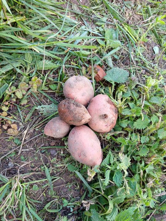 23.8.2025 pokračuje vykopávání brambor, ale je to čím dál tím složitější, protože jsou zarostlé v trávě!