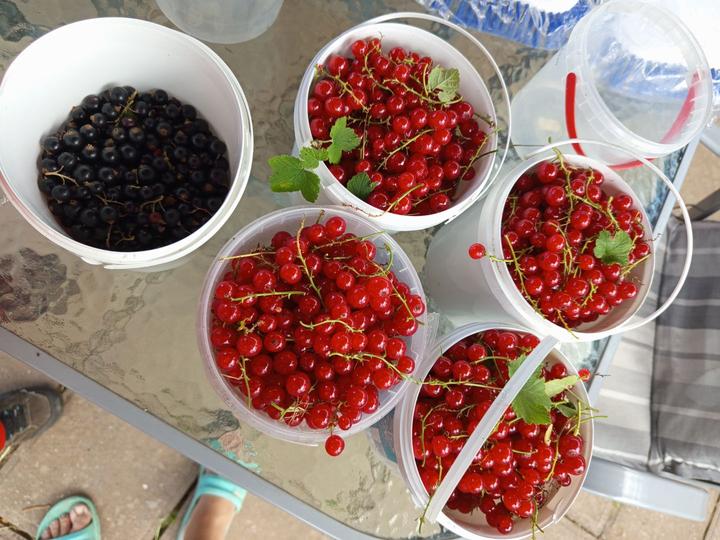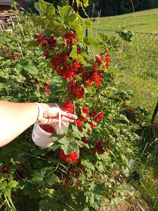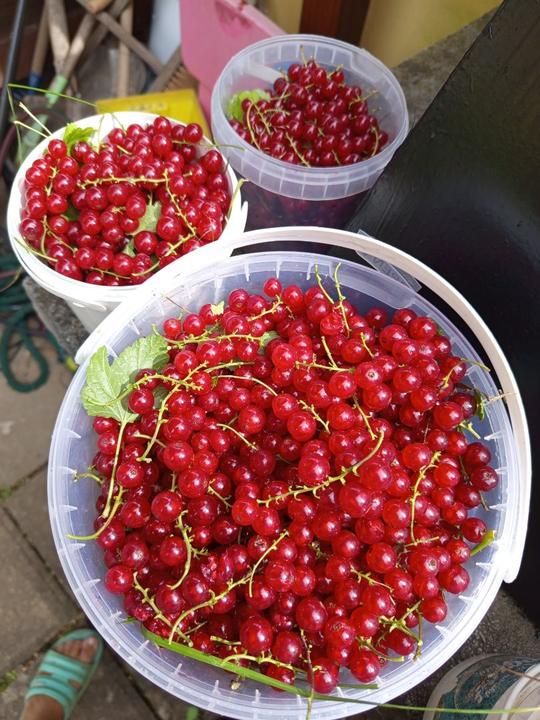 30.6.2025 po hradech sklízíme muchovník, černý rybíz (letos půl kybličku od jogurtu) a začala jsem sklízet červeny rybiz( 2,4 kg je v mrazáku)