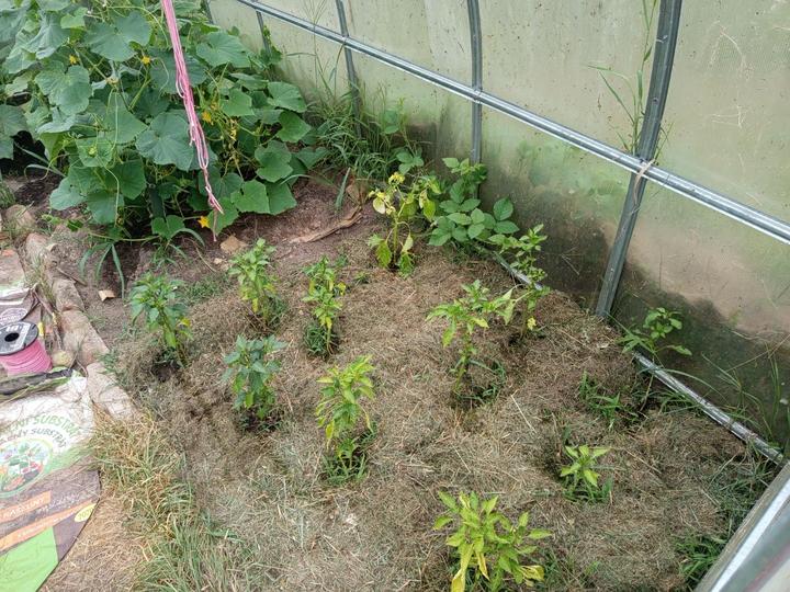 9.7.2925 dnes dopoledne pršelo, mandelinku nevidím, sekám a oprvé mulcuji skleníkové papriky..