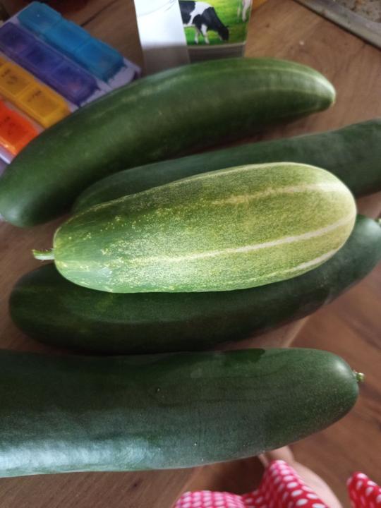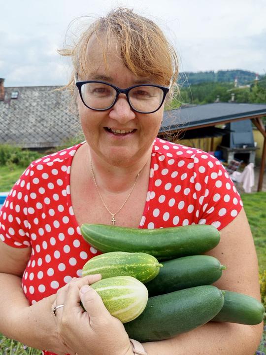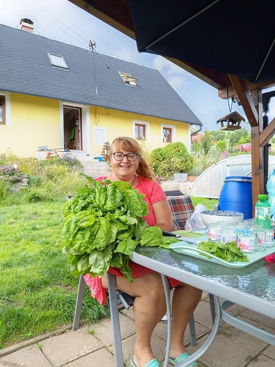 11.9.2025 dnes dopolední koupání, voda 25°C. Plesnivějící rostliny rajčat odvezeny do přistaveného kontejneru, otrhána některá zralá rajčata a pariky, příprava na kečup, sklizím ředkvičky, do skleníku zasazeny v úterý koupené hlávkové saláty. A protože je hrozně slimáků, tak jsem otrhala venku vetší okurky, 3 ks.