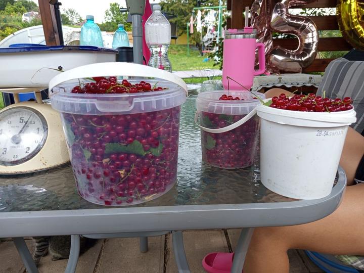 1.7.2025 zastipala jsem okurky a oddenky jsem na zkoušku dala do vody, spolu s jedním rajcetem. Sklizena další 3 kg červeného rybízu.