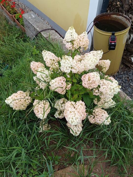 27.7.2025 dnes zamulčovaná 2 rajčata v multikulturním záhonu. Do dvou kyblíku, co vyšel Vládík a spadli to slimáci vysetá mrkev rána stupicka, do truhlíků redkvičky podlouhlé Slovan. K horním česnekovým rajcatun vysetý ředkvičky, ze zhora v levo : Ester, Faraon, Slovana. Sklizeny poslední 3 kg červeného rybízu. V Lídlu zachráněna a za 25 Kč zakoupena a před garáž do svahu zasazena latnatá hortenzie Sugar Rush: SUGAR RUSH je kompaktní odrůda hortenzie latnaté s pravidelným, hustým habitem, která dorůstá přibližně jen necelý metr na výšku i do šířky. Od poloviny léta až do podzimu rozvíjí středně velká, kuželovitá květenství složená z čistě bílých, sterilních květů, které si zachovávají svou barvu po celou sezónu, pouze na jejím úplném konci nabídne maličko růžové. Což ale nijak nenaruší její elegantní bělobu, která vypadá jako cukrová poleva na dortu. Není divu, že ji pojmenovali SUGAR RUSH, protože jakmile začne kvést, působí jako sladký nával energie, jako svěží výbuch květů, který rozjasní i ten nejklidnější kout. Díky pevným stonkům a kompaktnímu růstu si udržuje tvar i po dešti a působí upraveně bez nutnosti zásahů.