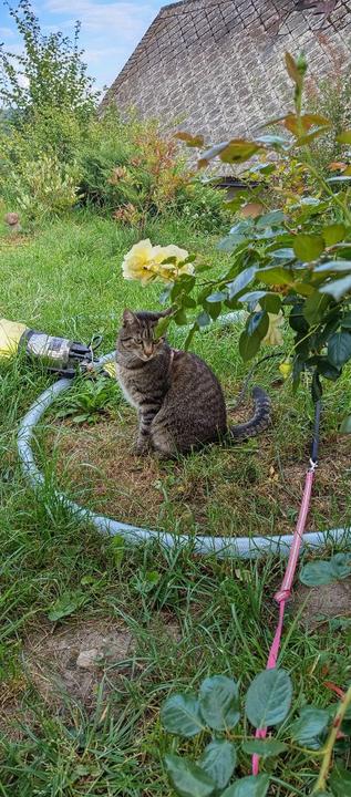 10.8.2025 manžel vytrhal malin, co se cpaly k sousedům, ostříhal skalník k obecní cestě. Kopie díry kolem zahradního domku- prý základy na drevnik, zkusila jsem trošku kopnout, jak na tom jsou brambory. V týdnu asi začnu kopat.