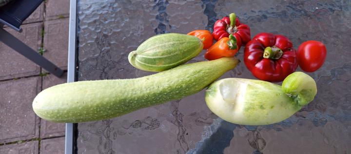 9.8.2025 návrat z dovolené-rajcata, co nejsou pod stříškou nebo ve skleníku jsou KO, hodně jsem jich úplně vytrhla, některé jen úplně otrhala listy, ale vidím to bledě. Okurková sklizeň pokračuje.