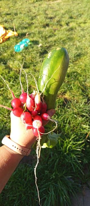 6.9.2025 dnes jsme po florbalovým turnaji trošku unavení, ale i přes to manžel vydláždil cestu ke spodnímu sklepů garáže a ja opět vykopala nějaké brambory. Sklízíme ředkvičky a první venkovní okurku, která má alespoň nějakou solidní velikost.