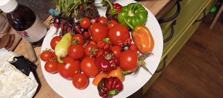 7.9.2025 koupačka, voda 26°C. Manžel pokračuje ve svém dřevníkovém projektu, odvozili od sušáku všechny palety, připravuje tam prostor pro borůvky, které si tam chce zasadit. Já dnes jen sesbírala rajčata na kečup, semínka mněsíčku a modré kytky. Vytáhla jsem že záhonků tyčky, co už nejsou potřeba. Je neděle, tak nedělám.Typ na rajčata Iva’s Red Berry , sladká Sweet Aperitiv, Zuckerino Lucas, Datterino Orange, Datterino Red, Datterino verde a Datterino Nero. Okurky hadovvky. Gergana a Marketmore.Dolcetto, dozraje celý vijan najednou.