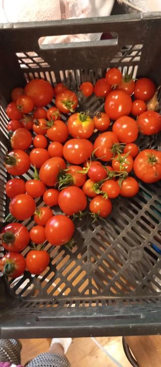 30.8.2025 vykopáno ubohé množství brambor pod trampolínou, koupačka, voda 26° C, v noci veliký déšť, sudy i nádrže jsou plně! Manžel věže švagrové a tchánovi nevím jaké množství rajčat! Sklizeny první ředkvičky z druhého výsevu