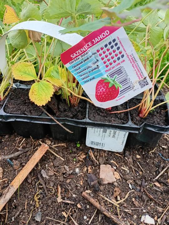 10.10.2025 v zahradnictví v Kruhu zakoupený jahody Korona- jednouplodící, ze zahradnictví Spomyšl dorazily objednané:Jahodník 'Mara de Bois' - převislý stáleplodící (multipack 10 ks),