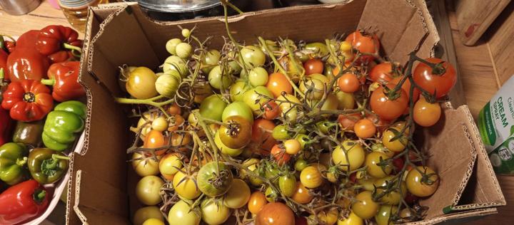 6.10.2025 ještě venku sklízím rajčata, ve skleníku papriky