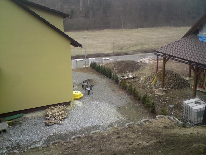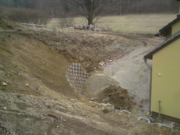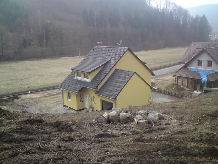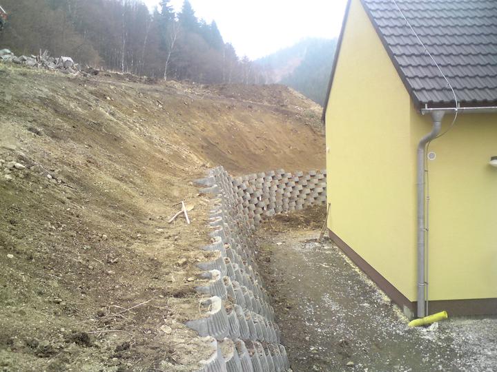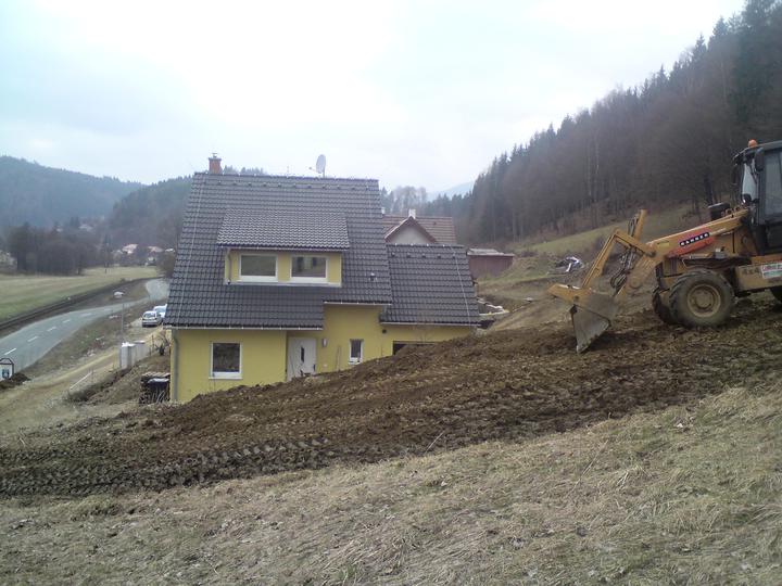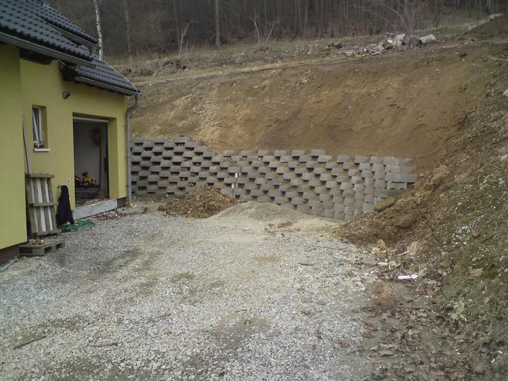 Konečné úpravy terénu+stavba opěrné zdi