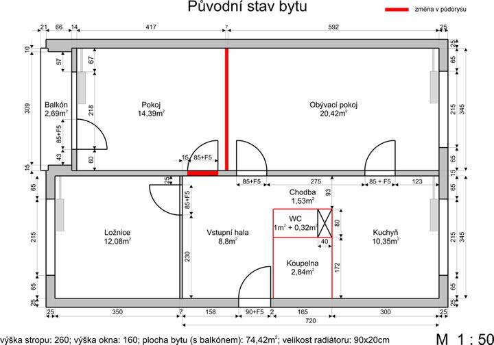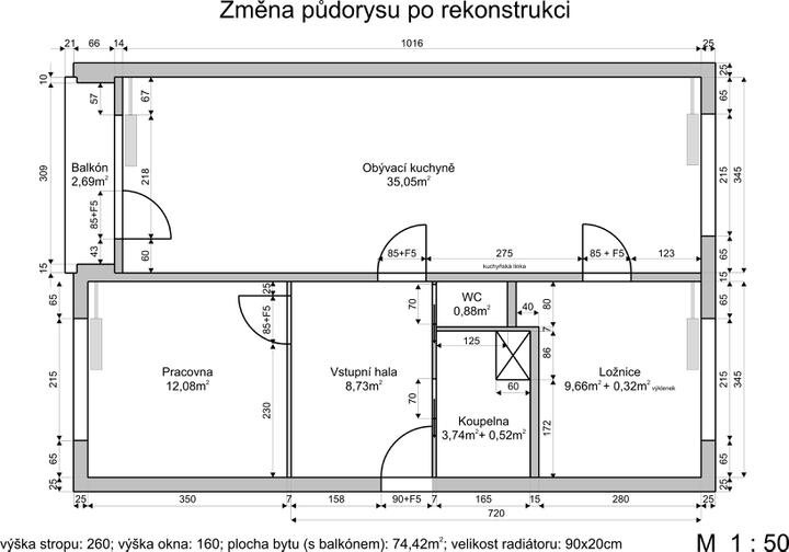 Máme byt, koupili jsme ho v původním stavu, kterému naštěstí odpovídala i cena :-). Máme v plánu změnit stávající dispozici 3+1 na 3+kk, spojit dva pokoje, přesunout kuchyň do obýváku, z původní kuchyně vytvořit ložnici a zvětšit koupelnu. Snad vše …