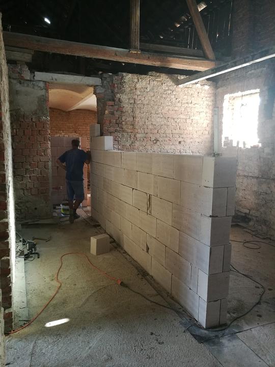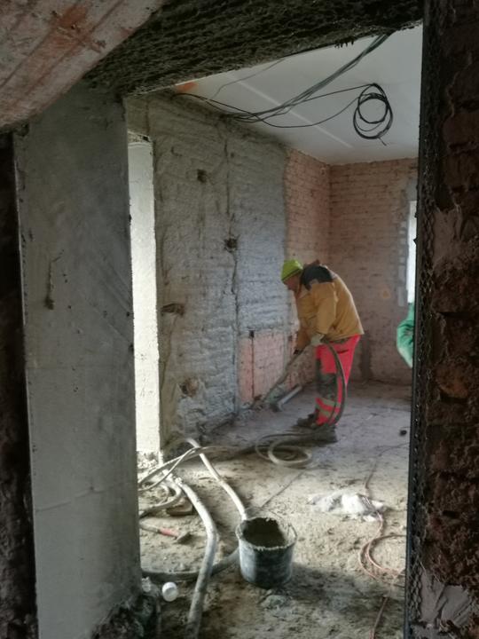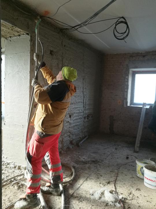 Následovali vnitřní omítky a na Vánoce šli pryč betony, pokračovalo se kopáním podlah.