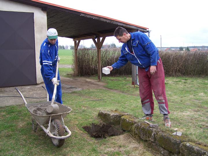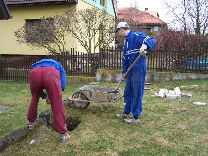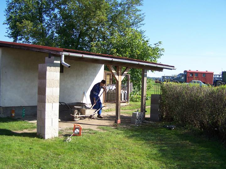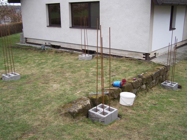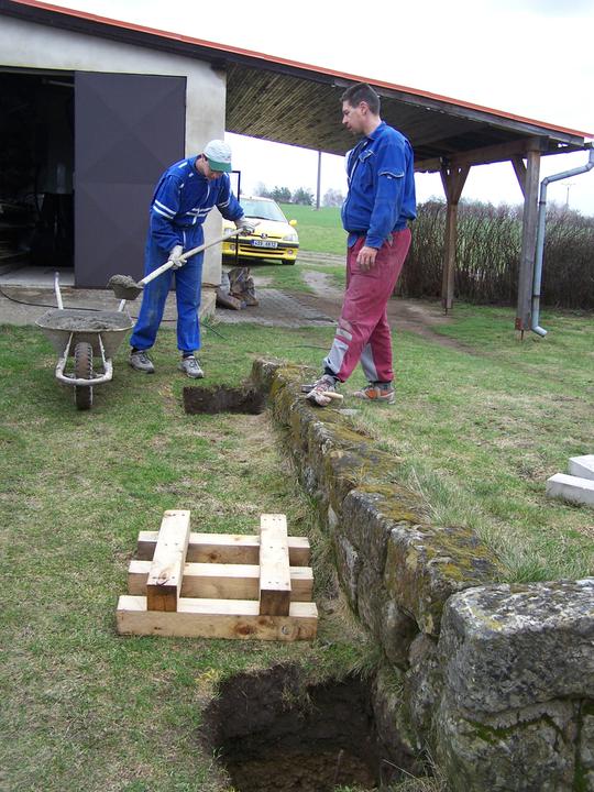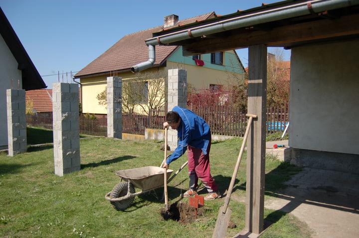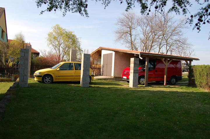 Jelikož nám chlapec vyrostl a dozrál do věku, že už si pořídil své vlastní auto, je nutné prodloužit garážové stání vzadu za domem, protože počet parkovacích míst už nám holt nedostačuje ;o)