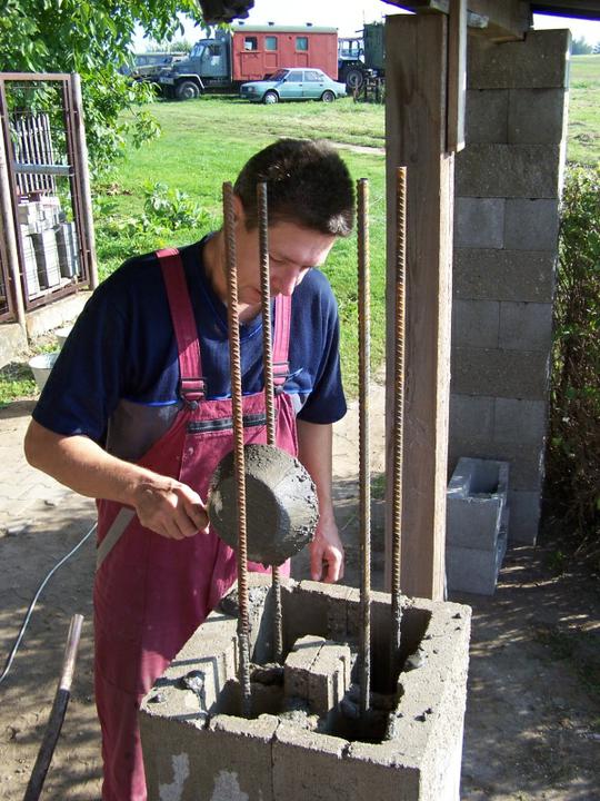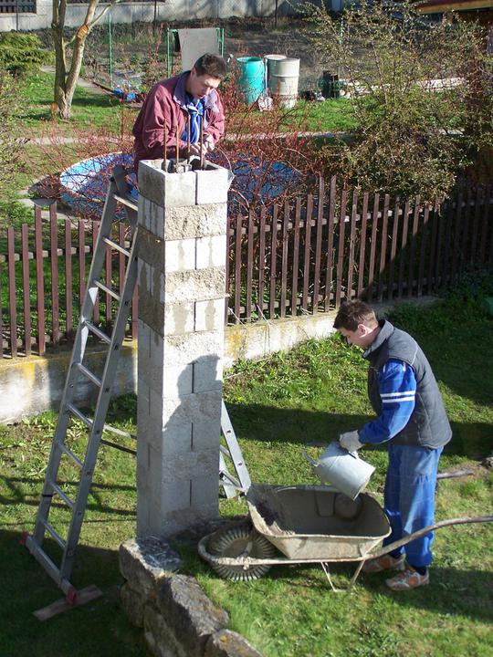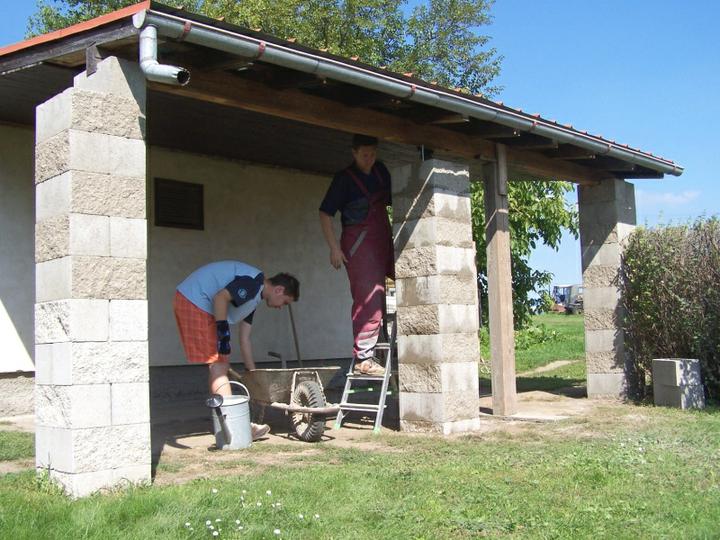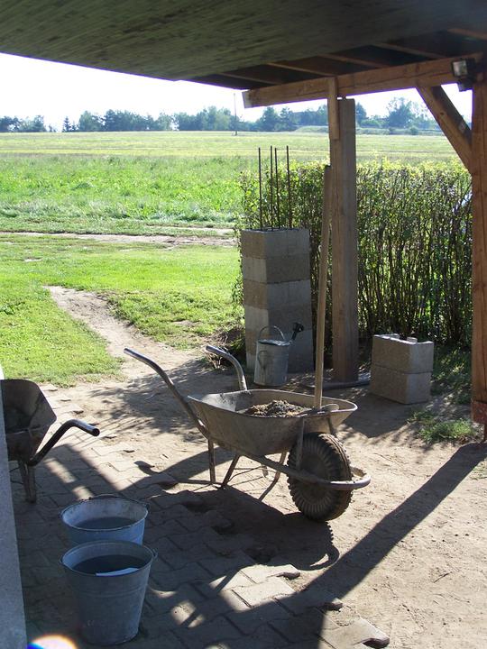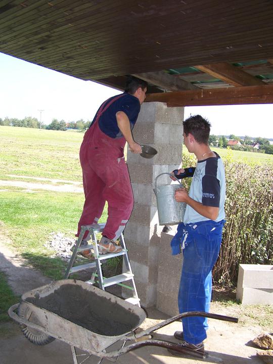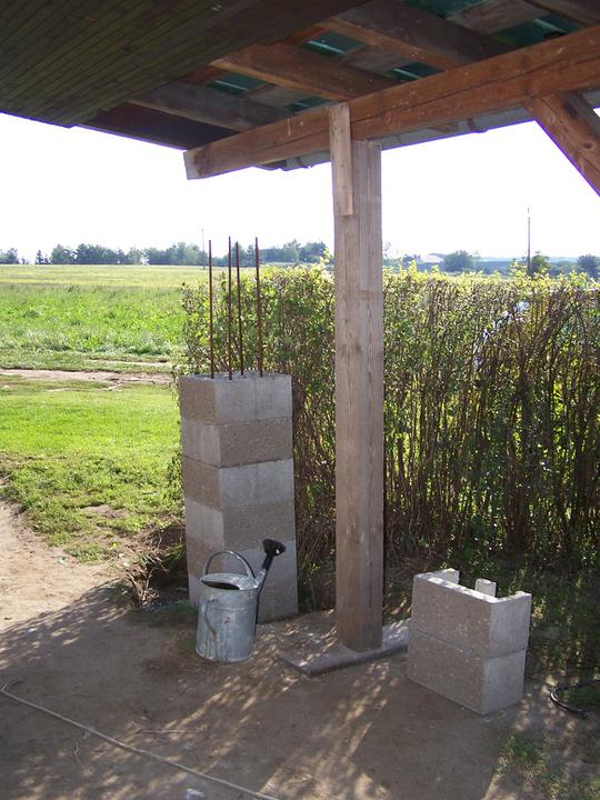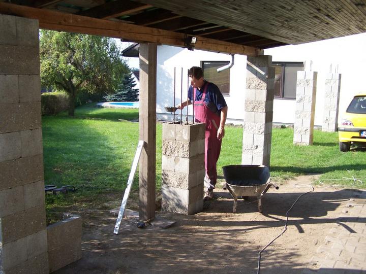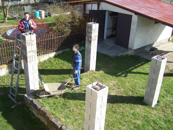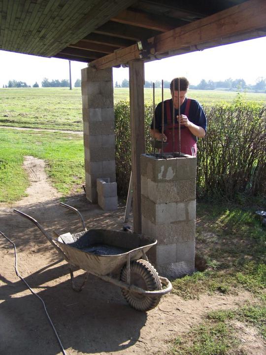 11.-12.9.10 Výměna starých sloupů za nové (2. část), všechny sloupy stejné, zděné. Hotovo, čeká se na tesaře