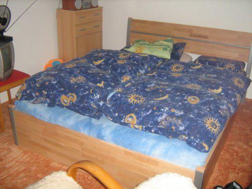 23.12.2008 Nová ložnice - na lino jsme položili nový koberec, složili postel a naproti už máme složenu skříň. Jediné co nám ještě chybí jsou noční stolky.