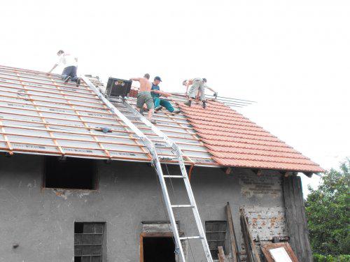 15-16.8.2009 Další práce na střeše začínáme pokrývat novými taškami..
