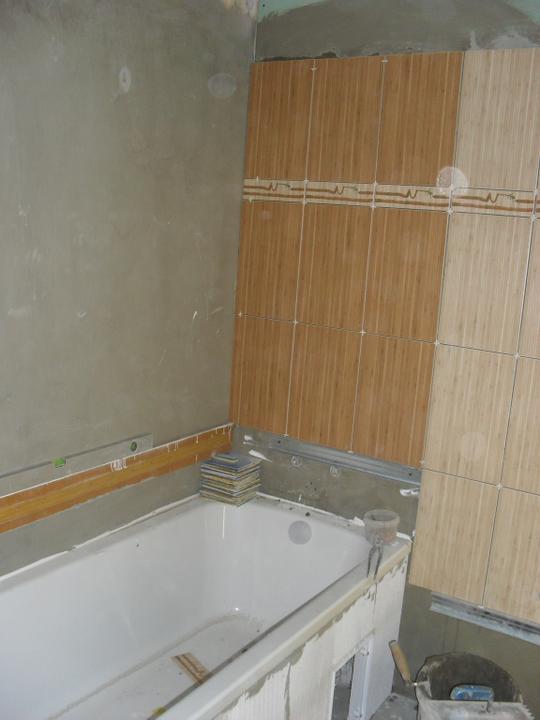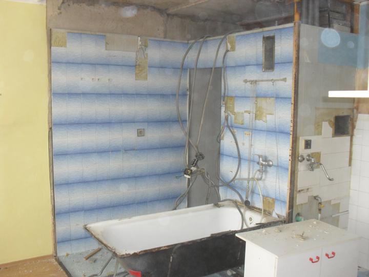 4.9.- sekání elektriky, odpady, vata, usazení vany, začátek obkládání koupelny