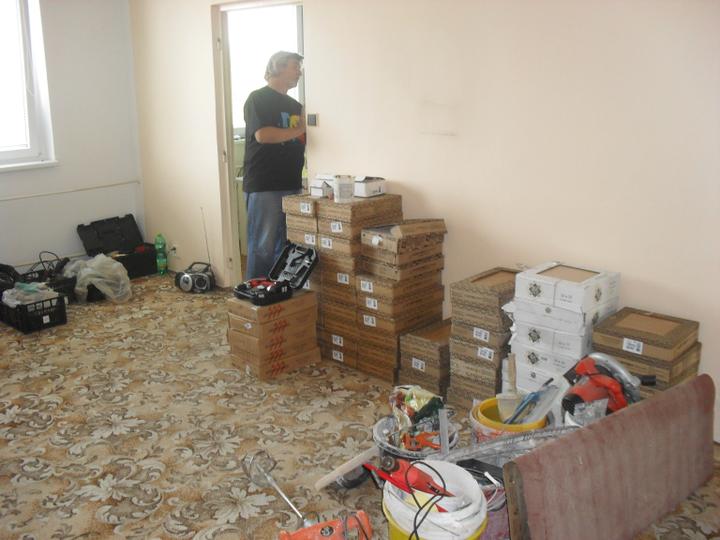 5.9. - výjezd na sběrný dvůr - vyhazov hnusáckýho umakartu a dalších obstarožních krámů:-D, obkládání kuchyně, částečné oškrábání obýváku, odpady