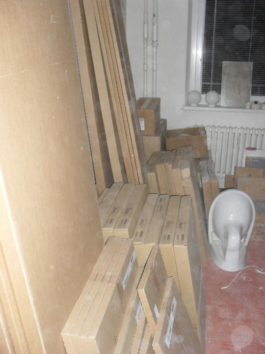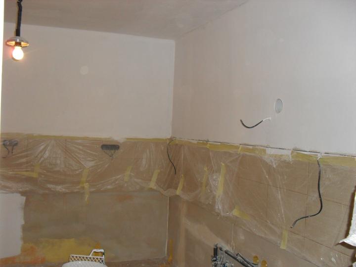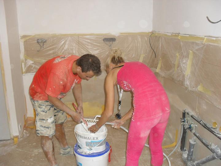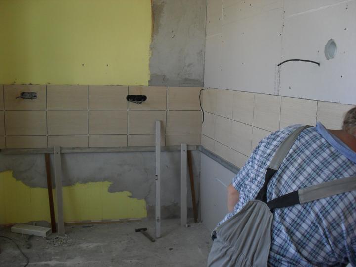 6.9. - přivezli všechny spotřebiče (kromě lednice), osazení konstrukce závěsného wc, obklady a dlažba v koupelně skoro hotovson:-), v kuchyni obklady a dlažba hotovo, omítkování stěny v obýváku